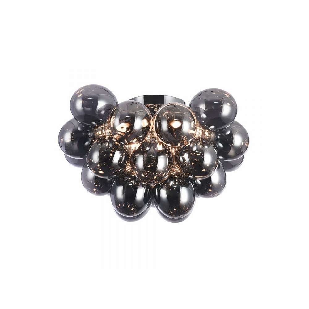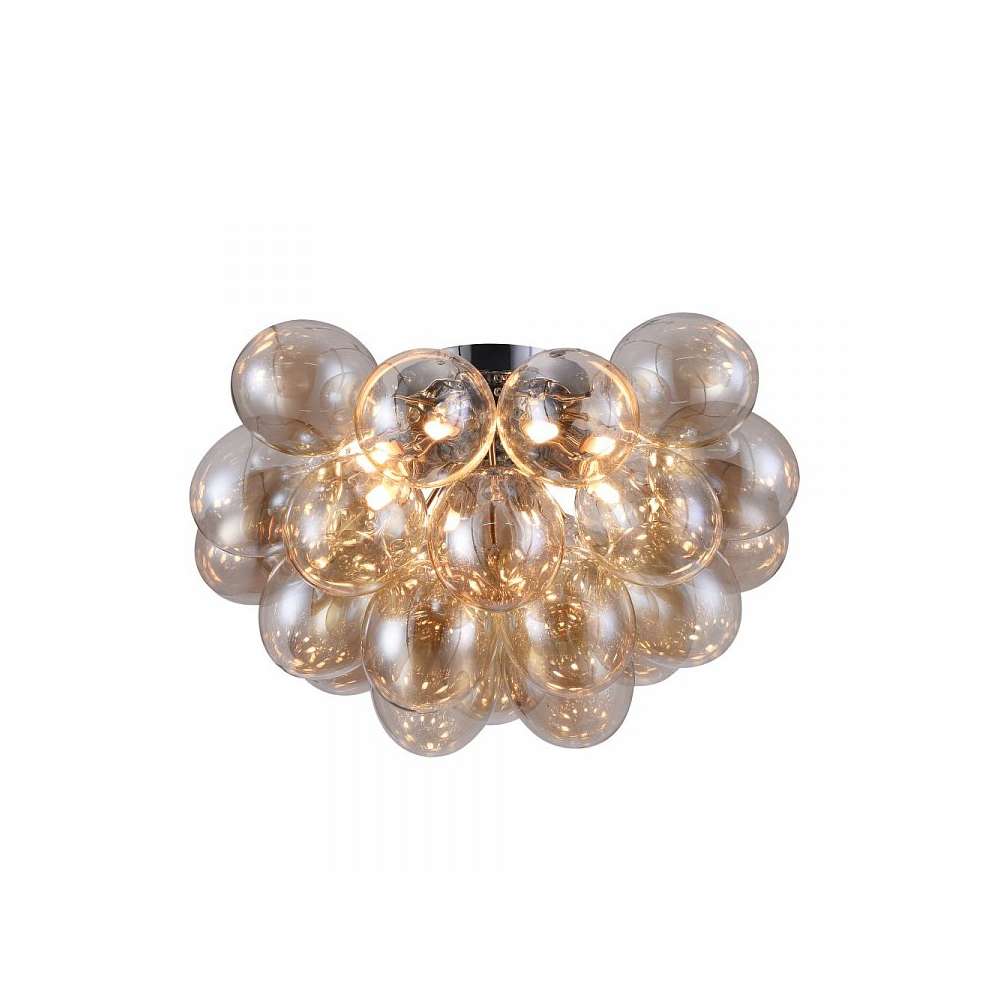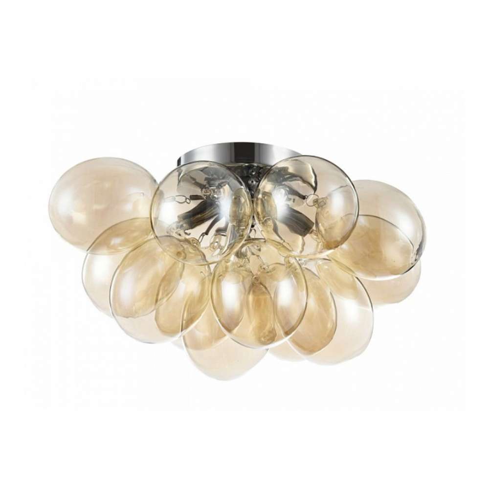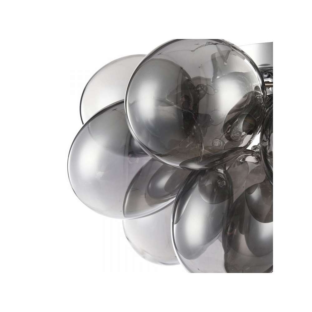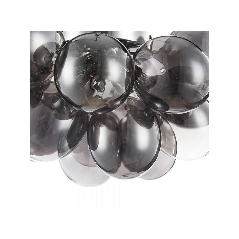 Metalowa rama. Klosze z przezroczystego szkła w dwóch kolorach: przydymionym i płowym.