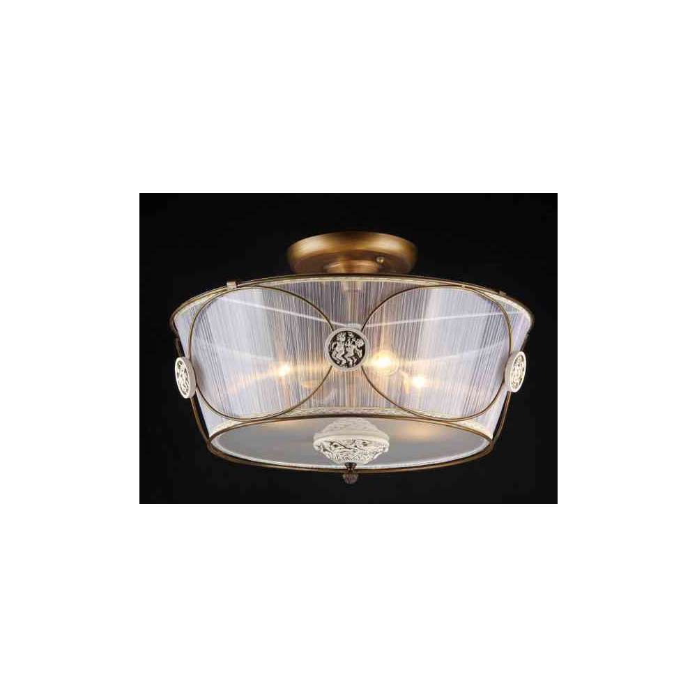Metalowa rama. Dekoracyjny element ceramiczny. Klosze z przezroczystej plisowanej organzy.