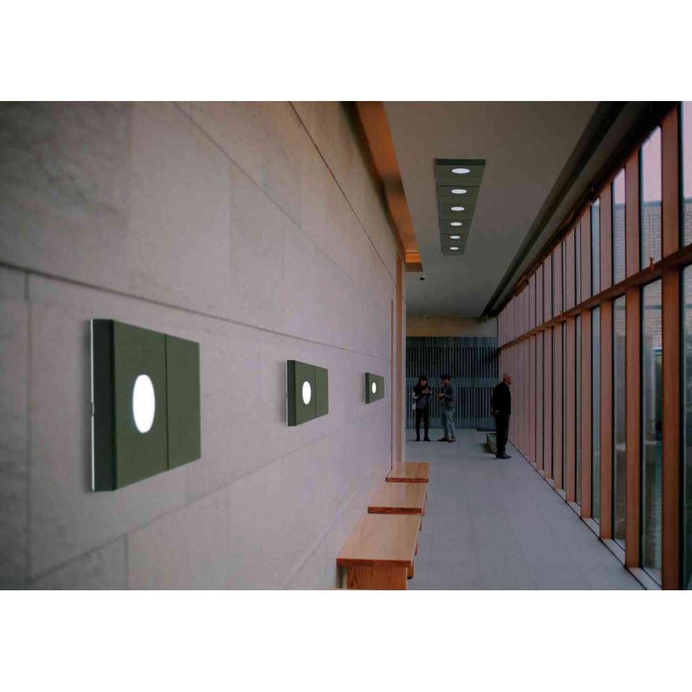 Modułowa lampa ścienna lub sufitowa z kwadratową ramą. Dostępna w dwóch wersjach: jedna ze światłem centralnym, druga bez światła dla uproszczenia zabawnych kompozycji.