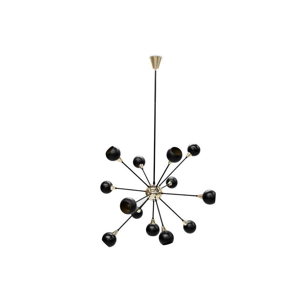 BLAKEY to lampa wisząca, która odzwierciedla epokę i sztukę współczesną. Łączy w sobie symbiozę pomiędzy mocną prezencją podkreślającą przestrzeń, a prostotą kształtów i ich proporcjami dostosowanymi do realiów naszych czasów. Jest prezentowany w wersji standardowej z matową czarną strukturą, z kloszami i centralną kulą podświetloną na złoto, co jest opcją dla nadania większej elegancji.