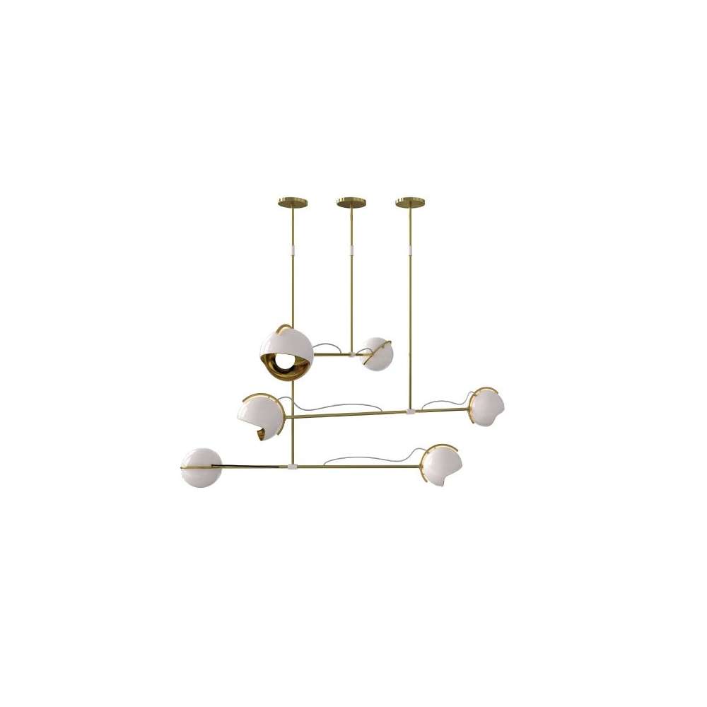 Projektanci firmy DelightFULL stworzyli lampę wiszącą Laine z myślą o klimacie połowy wieku. Zainspirowany kultową erą, która przyniosła światu tyle kultury, ten zestaw reflektorów zaaranżowanych tak, jak magia jest w twoim domu, ta nowoczesna lampa sufitowa na nowo definiuje, czym jest oświetlenie z połowy wieku. Z korpusem wykonanym z mosiądzu i aluminiowym odcieniem, jest po prostu poetycki i ekstrawagancko malowniczy. Delikatne rurki teleskopowe z korpusem w kolorze pozłacanym i kloszem w kolorze błyszczącej bieli, dodadzą tylko piękna i klasycznego charakteru Twojemu wnętrzu. Materiał: Mosiądz, Aluminium Waga: x Oświetlenie: 6 x E14 Żarówki LED (w zestawie) (dla USA nie są dołączone) maks. 40 W na żarówkęOdbiorca: :