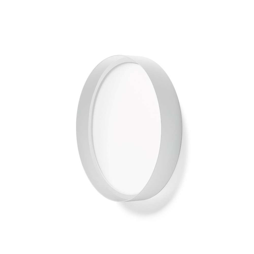 Okrągła oprawa ścienno-sufitowa z ramą z blachy stalowej w wersji biało-czarnej, oświetlenie bezpośrednie i pośrednie.