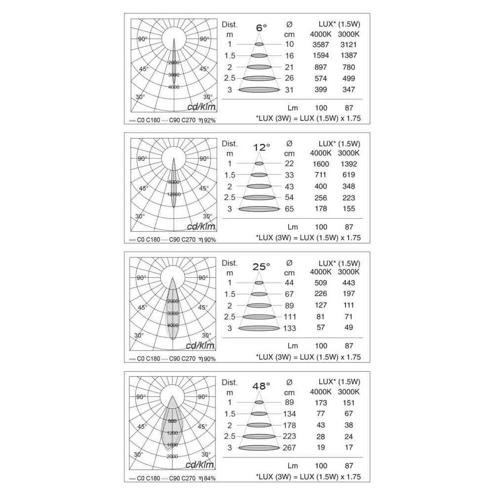 TUBO 1 Projektor LED do montażu sufitowego do zastosowań wewnętrznych i zewnętrznych Lampa: 1 LED CREE Wejście: 220/240V 50/ 60 Hz Moc: 1,5 W / 3 W Tolerancja kolorów: 2-SD cm / 3- SDCM Aluminiowy korpus z powłoką zabezpieczającą powierzchnię, a następnie proszkiem poliestrowym farba odporna na korozję, warunki atmosferyczne i mgłę solną Szkło hartowane, ultraprzezroczyste, antyodblaskowe ze szlifowanymi krawędziami Kąty rozsyłu 6° 12° 25° 48° Uszczelki silikonowe Zintegrowany zasilacz korpus produktu Maksymalna dopuszczalna temperatura otoczenia + 50°COdbiorca: :