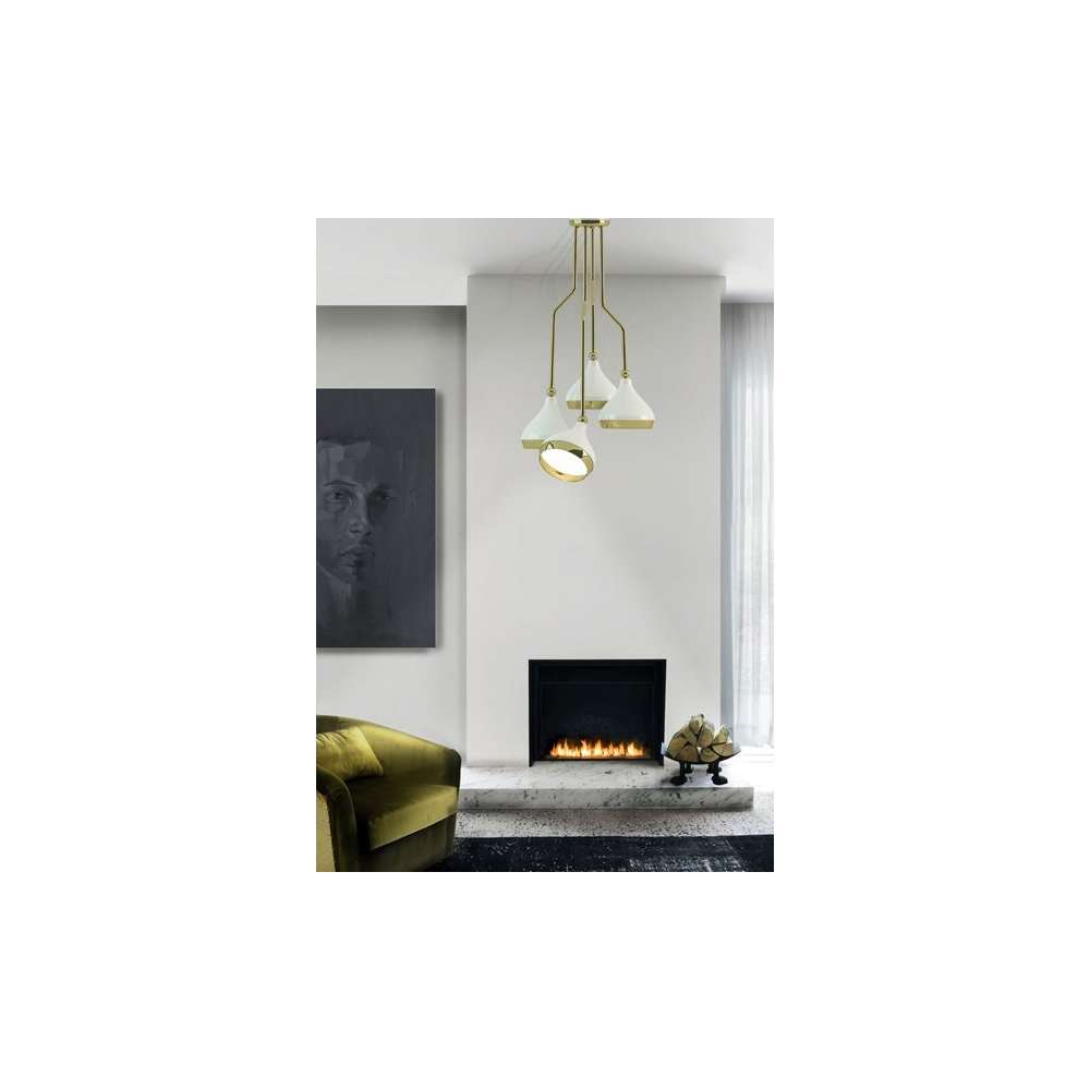 Hanna to wisząca lampa w stylu vintage, która idealnie pasuje do salonu. Jego konstrukcja wykonana z mosiądzu nawiązuje do klasycznej atmosfery. Ta wspaniała lampa wisząca jest elegancko skomponowana z pięciu ramion i trzech kloszy wykonanych z aluminium przez rzemieślników, którzy delikatnie stosują starożytną technikę zwaną ręcznym przędzeniem metalu. Standardowe wykończenia: Klosz: Kolor Lakierowany RAL. Rama: chromowana lub pozłacana. Wymiary: Wysokość: 43,3” | 110 cm. Średnica: 19,7” | 50 cm. Lampy: E27 4x Lampy.Odbiorca: :
