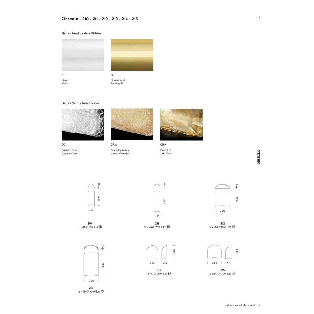 Orseolo to szklana lampa sufitowa. Art. 211 2 x MAX 70W E27 Art. 212 1 x MAX 70W E27 Art. 213 2 x MAX 70W E27 Światło staje się niezbędnym elementem geometrycznym, łączącym wszechstronność wzornictwa ze spokojną estetyką. Minimalistyczne powierzchnie uwydatniają nieskończone niuanse, których efekt uzyskuje się poprzez nakładanie ton w ton szklanej grysu. Charakterystyczne kryjące odcienie uzyskuje się w procesie piaskowania, który polega na pokryciu przezroczystej powierzchni klosza pigmentami szklanymi.Odbiorca: :