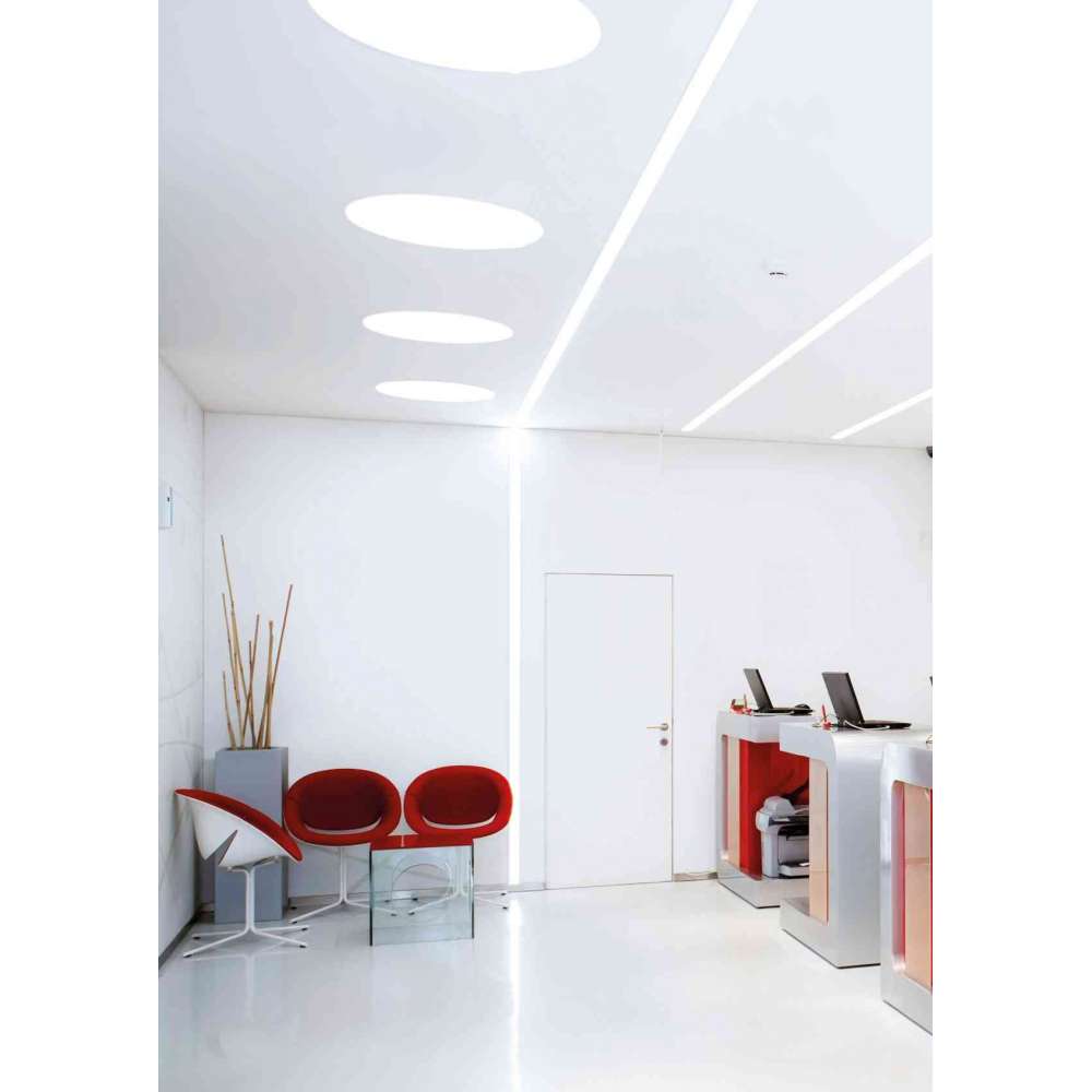 Okrągła oprawa LED wpuszczana bez wykończenia. Dostępne w 4 rozmiarach (Ø 400, 600, 900 i 1150 mm) wyposażone w poliwęglanowy mikropryzmatyczny klosz gCONTROL/gCONTROL+ lub opalizowany poliwęglan DOZ. Wersja standardowa z LED 4000K, CRI>80 i 50.000h żywotności (@L80, B10, Ta 25ºC). Opcjonalny sterownik ściemniania 3000K, DALI, technologia TunableWhite i jednostka awaryjna na 1 lub 3 godziny. Dostępny w 16 różnych kolorach.