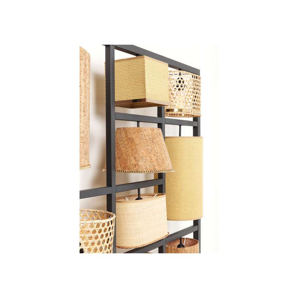 Pora na abażury: tutaj jest dwanaście jednocześnie! Wszystkie w różnych stylach i materiałach, ale z jednym wspólnym mianownikiem: kolory z natury. Cecha szczególna: kinkiet wygląda graficznie ze względu na swoją ramę, ale także zabawnie ze względu na różne kształty i rozmiary kloszy. Ułatwia to dostosowanie do różnych stylów wyposażenia. Dostępne w różnych wersjach. klasa wydajności AE, 230 V, 50/60 Hz, oprawka E27, ilość źródeł światła 12, max. 40 W, bez źródła światła, wymienne źródło światła