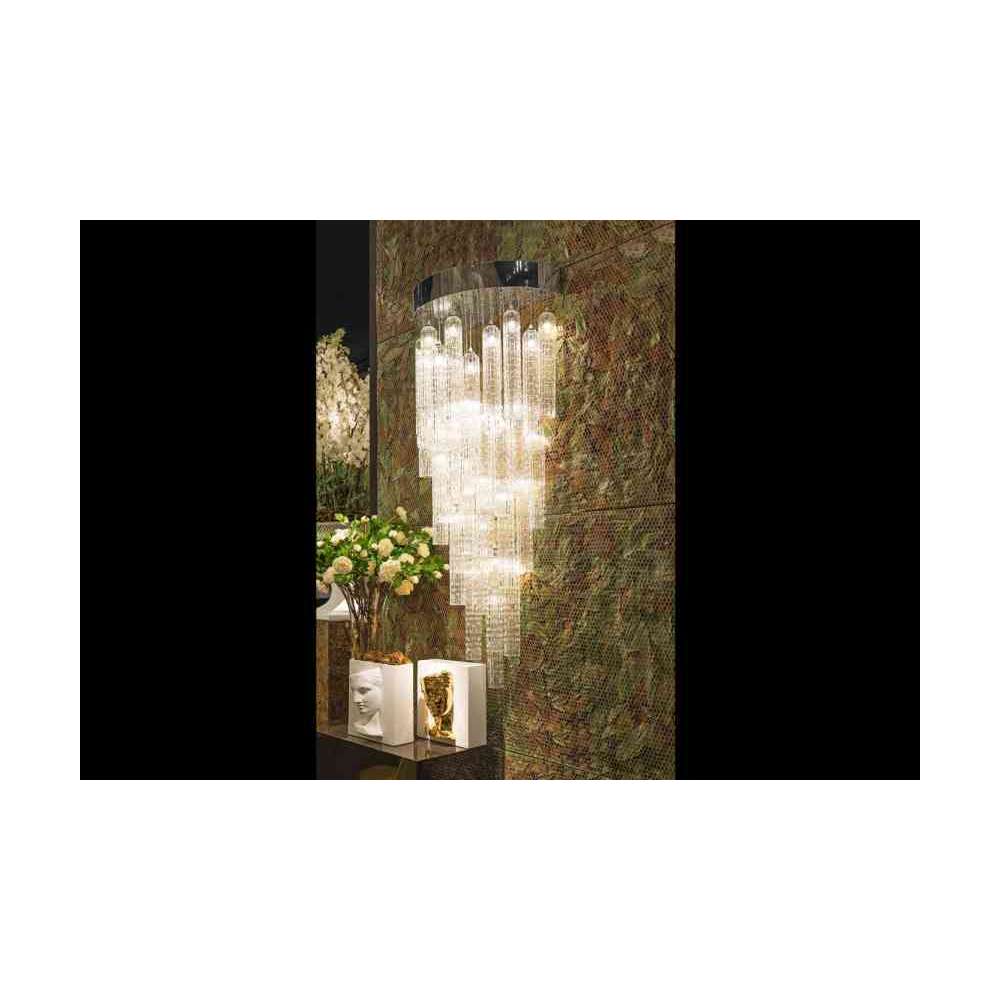Kinkiet LED ze stalową płytą i cylindrami ze szkła Murano. 100% Made in Italy.
