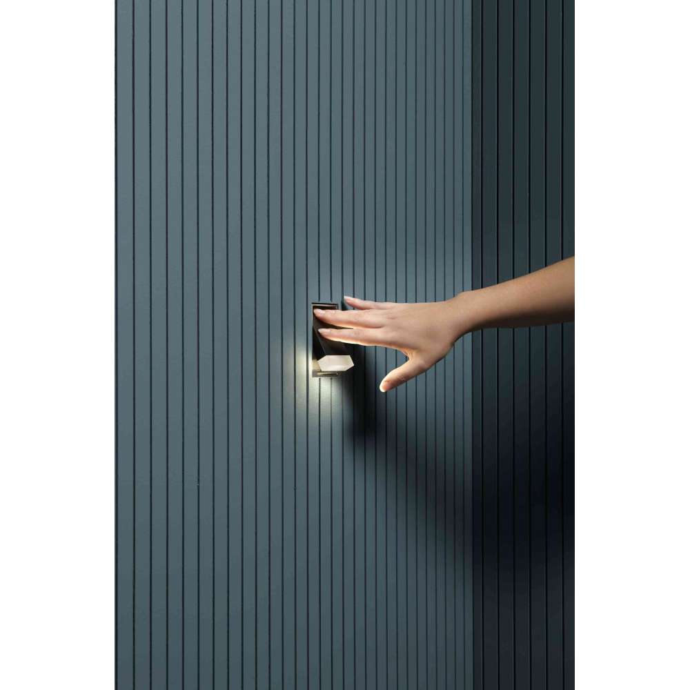 Aby włączyć lub wyłączyć Scrigno, po prostu naciśnij korpus lampy u góry, aby odchyliła się i włączyła o jednocześnie, aby ją wyłączyć, wystarczy wcisnąć korpus lampy na dole w miejscu, w którym z powrotem wpasuje się w ścianę. Niezbędne, minimalistyczne, geometryczne, ale zdolne do poprawy komfortu przestrzeni, w których żyjemy, najlepiej integrując się ze współczesnym i eleganckim stylem architektonicznym. Scrigno to lampa stworzona z myślą o dobrym samopoczuciu człowieka, to projekt eksplorujący tematy wielokrotnie badane przez antoniolupi dotyczące integracji obiektów w obrębie ścianek działowych, między systemami i rozwiązaniami, które znikają w ścianie, a elementami, które płynnie z niej wyłaniają się. Podejście do trójwymiarowości powierzchni, które pozwala wykorzystać nieoczekiwane przegródki, nie zajmować cennej przestrzeni i nie utrudniać swobodnego poruszania się po pomieszczeniach.