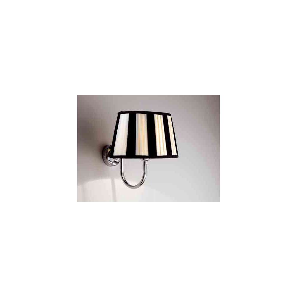 Ramię z toczonego mosiądzu z chromowanym wykończeniem (dostępne również w wykończeniu z białego złota). Owalny klosz wykonany jest z dwukolorowej tkaniny plisowanej.