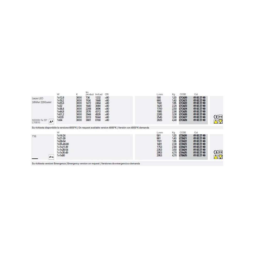 Seria opraw do wbudowania i bez przycięcia wpuszczanych, montowanych do sufitu, naściennych i wiszących do bezpośredniego rozproszonego oświetlenia. Do zintegrowanych liniowych źródeł LED lub do świetlówek T16. Zintegrowane zasilanie elektroniczne 230/240V-50/60Hz. Korpus o wymiarach 61,5x40 mm. wytłaczane aluminium. Malowane lub anodowane wykończenie. Super smukły 5 mm. szerokość krawędzi wykończenia. W komplecie z uchwytami do mocowania do sufitu podwieszanego/ściany, z systemem śrub mikroregulacyjnych, bocznymi zaślepkami i mlecznobiałym lub mikropryzmatycznym (zgodnym z dyrektywą UE EN 12464-1) kloszem z poliwęglanu lub wysokowydajną ciemno-jasną aluminiową kratką. Oprawy stają się modułami systemowymi, jeśli są instalowane w profilu Kontener (patrz rozdział Systemy). Stopień ochrony IP40/IP43. Skrzynka ścienna z wytłaczanego aluminium do montażu wpuszczanego w ścianach betonowych lub ceglanych, dostępna jako wyposażenie dodatkowe.