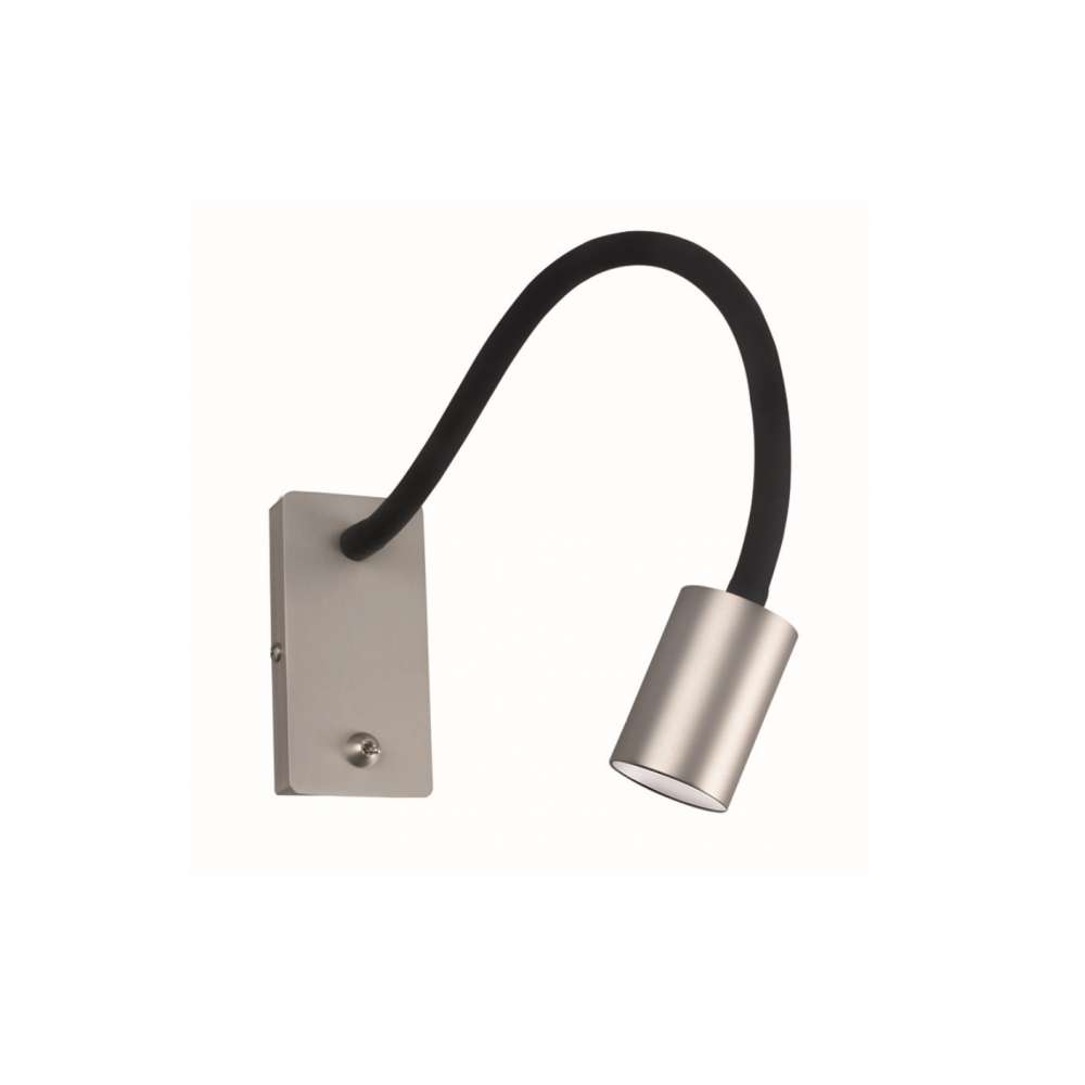 ELSA by Terzo Light to stalowy kinkiet LED z wysięgnikiem i włącznikiem na podstawie.