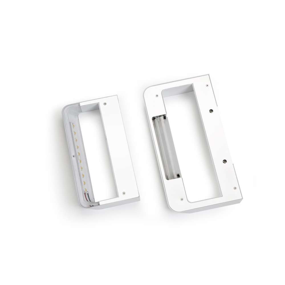 Kinkiet o konstrukcji z odlewanego ciśnieniowo aluminium. Jego smukły i zasadniczy kształt pierścienia umożliwia przepływ światła zarówno w górę, jak i w dół.