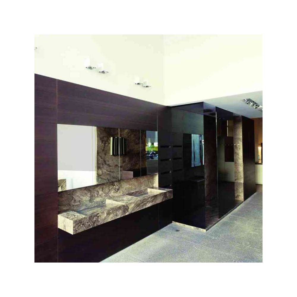 Cubo to rodzina lamp sufitowych i ściennych, która została zrealizowana w celu zaspokojenia podstawowych potrzeb projektowych w zakresie oświetlenia za pomocą orientowanych diod LED QR111 i halogenów lub dla rozproszonego światła z tablicą LED i matowym ekranem metakrylanowym. Wykonany z aluminium w kolorze białym matowym. Transformator mocy i sterowniki zintegrowane w konstrukcji lampy.