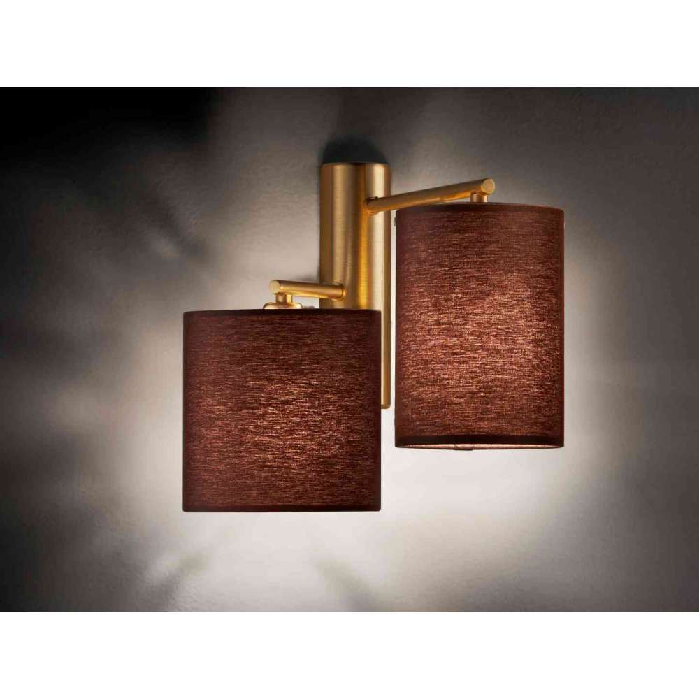 KOEL A2 to kinkiet z metalową konstrukcją i kloszem z tkaniny. 2 E14 x max 28W Wykończenie: Satynowe złoto Inne wykończenia na życzenie. Kolor: Kolekcja TheKoel jest dostępny z kloszem mod. 7096 cylinder z brązową tkaniną chinette. Inne abażury na zamówienie. Szczegóły: Konstrukcje metalowe są produkowane ręcznie na podstawie naszego rysunku. Abażury mod. Butle 7096 występują w różnych średnicach i wysokościach. Produkowane są ręcznie.Odbiorca: :