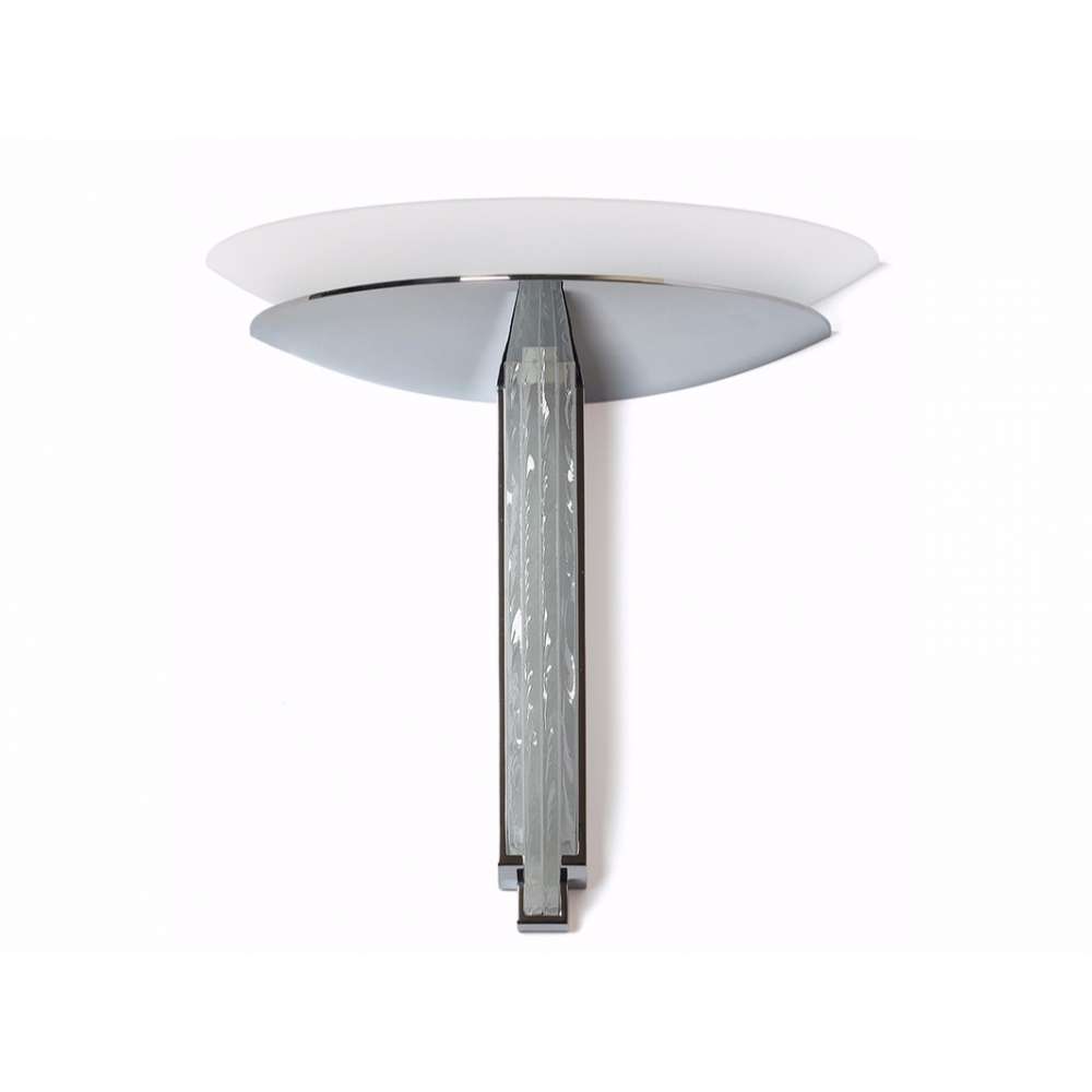 650 - Ta lampa ścienna ozdobiła wielką luksusową kabinę na statku wycieczkowym „Normandie”. Wspaniałe materiały, w szczególności płyty szklane szlifowane diamentem, wsparte na drobnym oprawie z brązu. Została stworzona w czasach, gdy istniała prawdziwa sztuka życia. Dostępne różne wykończenia i średnice. Działa z każdym rodzajem żarówki.Odbiorca: :