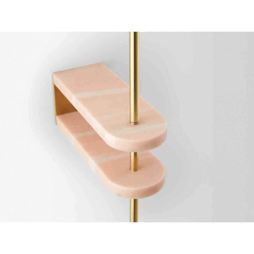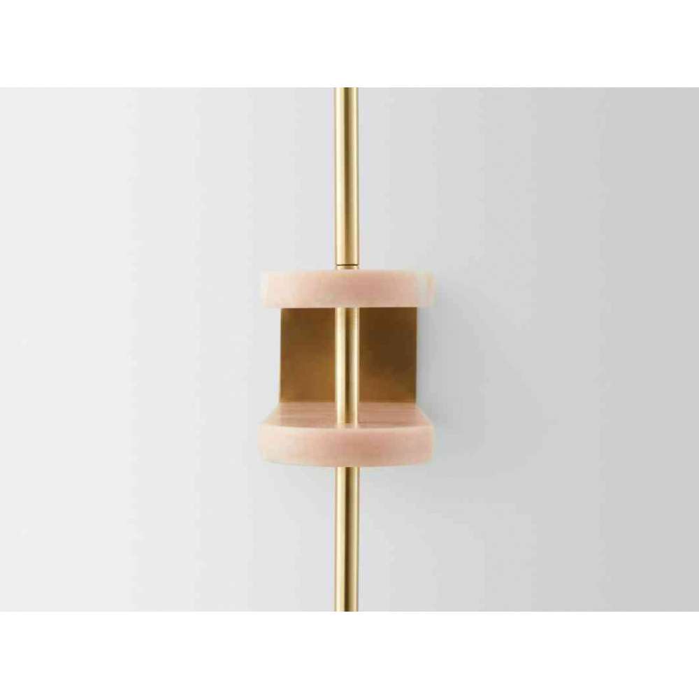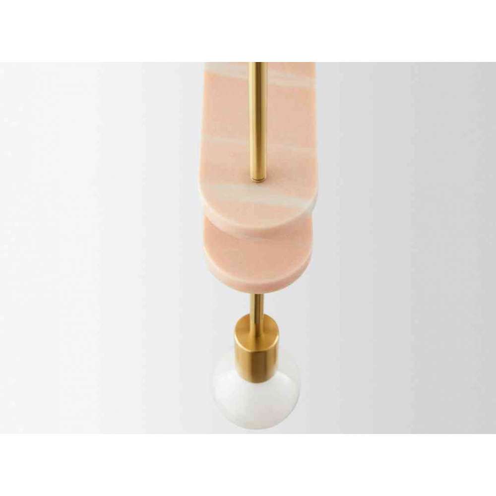 Twarde materiały ziemi tworzą miękką obecność w serii Discus . Kamienne dyski są przebite mosiężnymi prętami, które są połączone z odlewanymi hakami. Na zdjęciu z marmurem rosa aurora i mosiądzem. Dostępne na zamówienie kamień i zawieszenia. Zapytaj o nasz aktualny wybór kamieni.