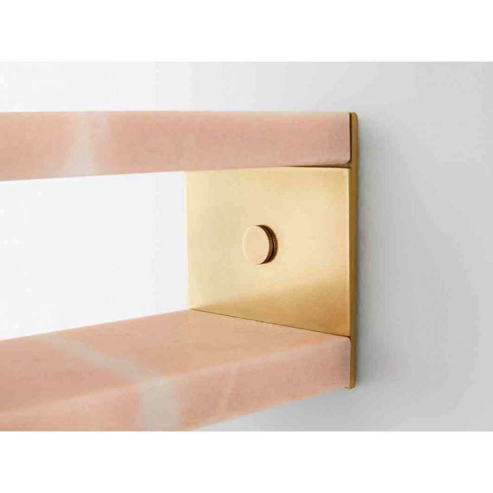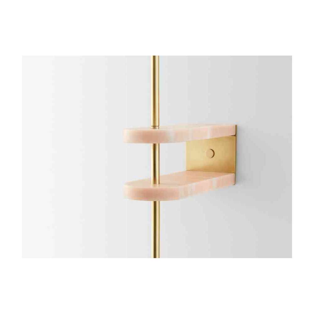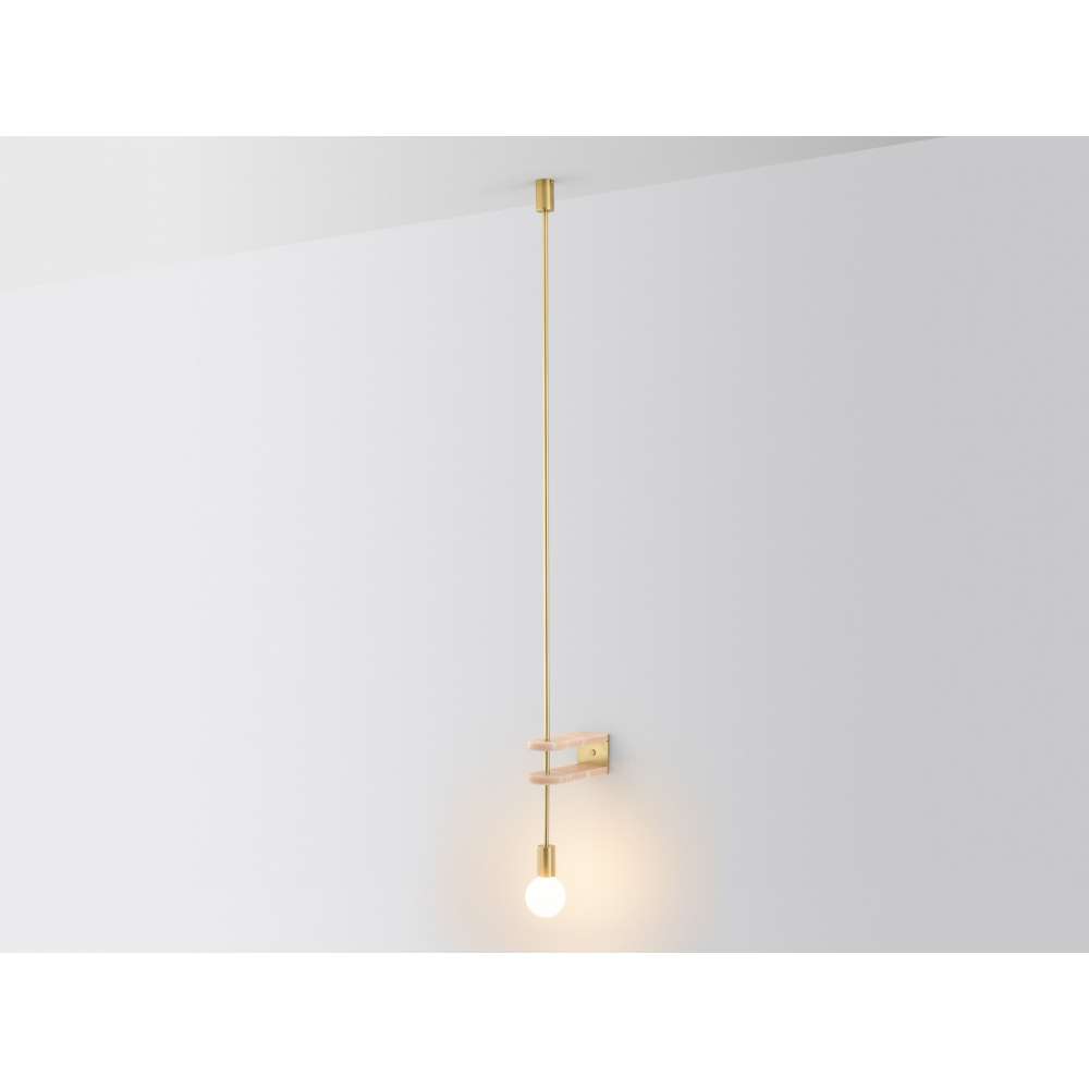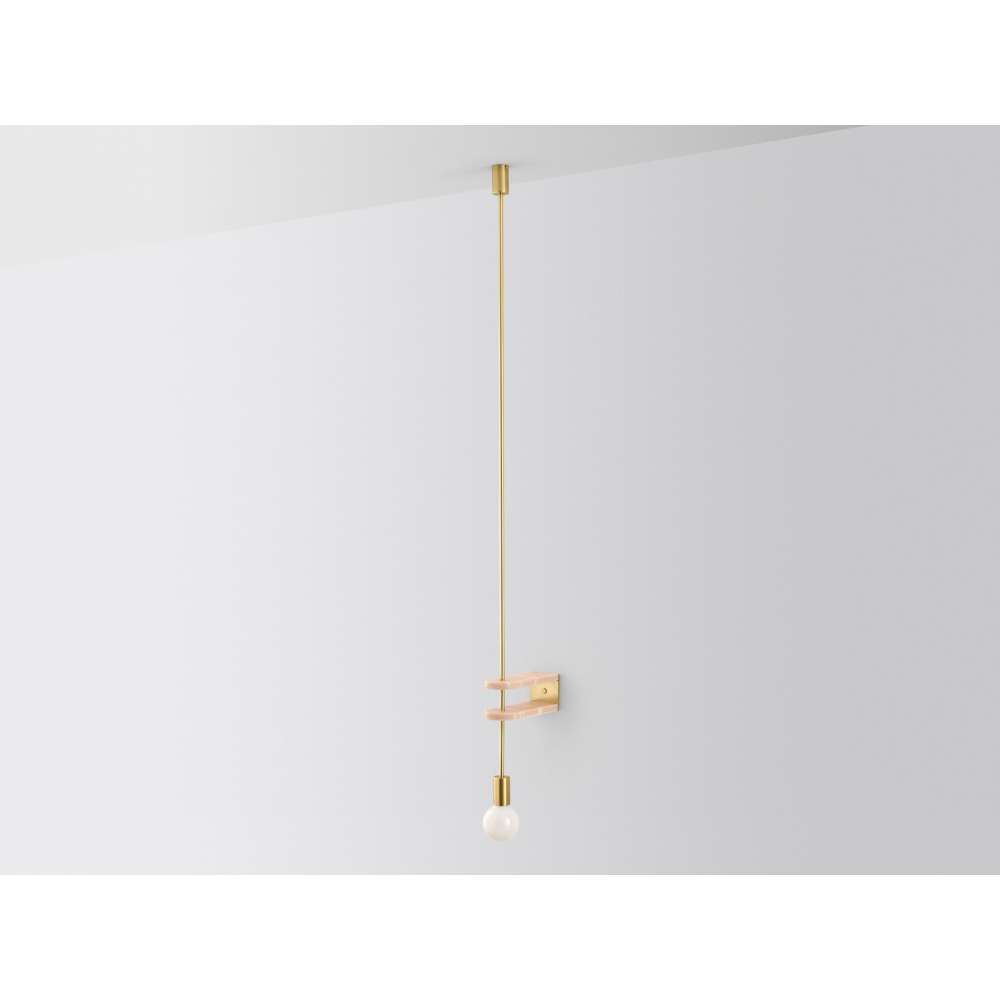 Twarde materiały ziemi tworzą miękką obecność w serii Discus . Kamienne dyski są przebite mosiężnymi prętami, które są połączone z odlewanymi hakami. Na zdjęciu z marmurem rosa aurora i mosiądzem. Dostępne na zamówienie kamień i zawieszenia. Zapytaj o nasz aktualny wybór kamieni.