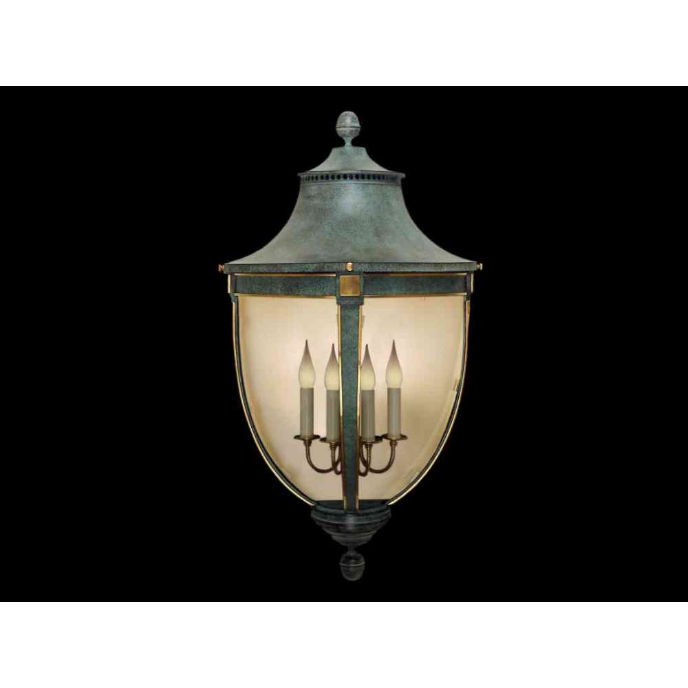 Kinkiet typu Half-Lantern Ove. Pozłacany brąz 24K i ciemna antyczna zielona patyna.