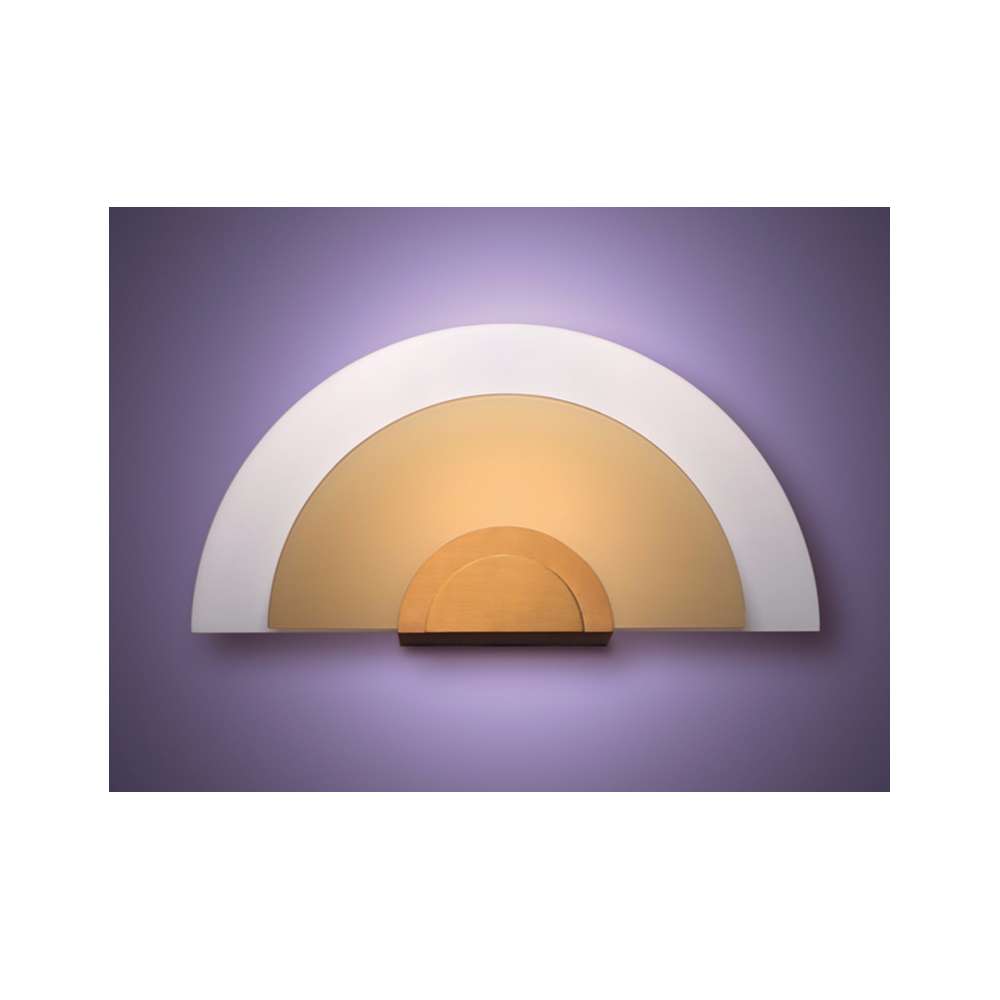 160 – abstrakcje geometryczne. Panele światła, te kinkiety stworzone w 1926 roku zapewniają wszystkie możliwości wyboru dla harmonii: piaskowane lub emaliowane szkło, jedno lub dwukolorowe. Dostępne są różne wykończenia. Inne rozmiary na życzenie. Współpracuje z każdym typem żarówki.Odbiorca: :