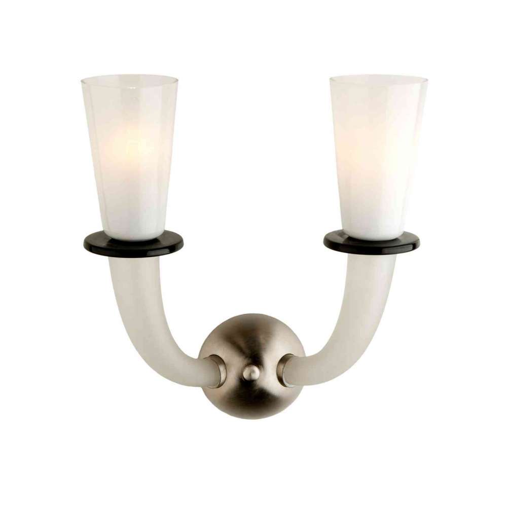Wymiary: wys. 33 cm / 13 "x szer. 24 cm / 9,5" x gł. 16 cm / 6,3 ". Żarówki: 2/E14 x 40W (maks.). Rama: Nikiel szczotkowany. Kolor szkła: piaskowany i czarny.