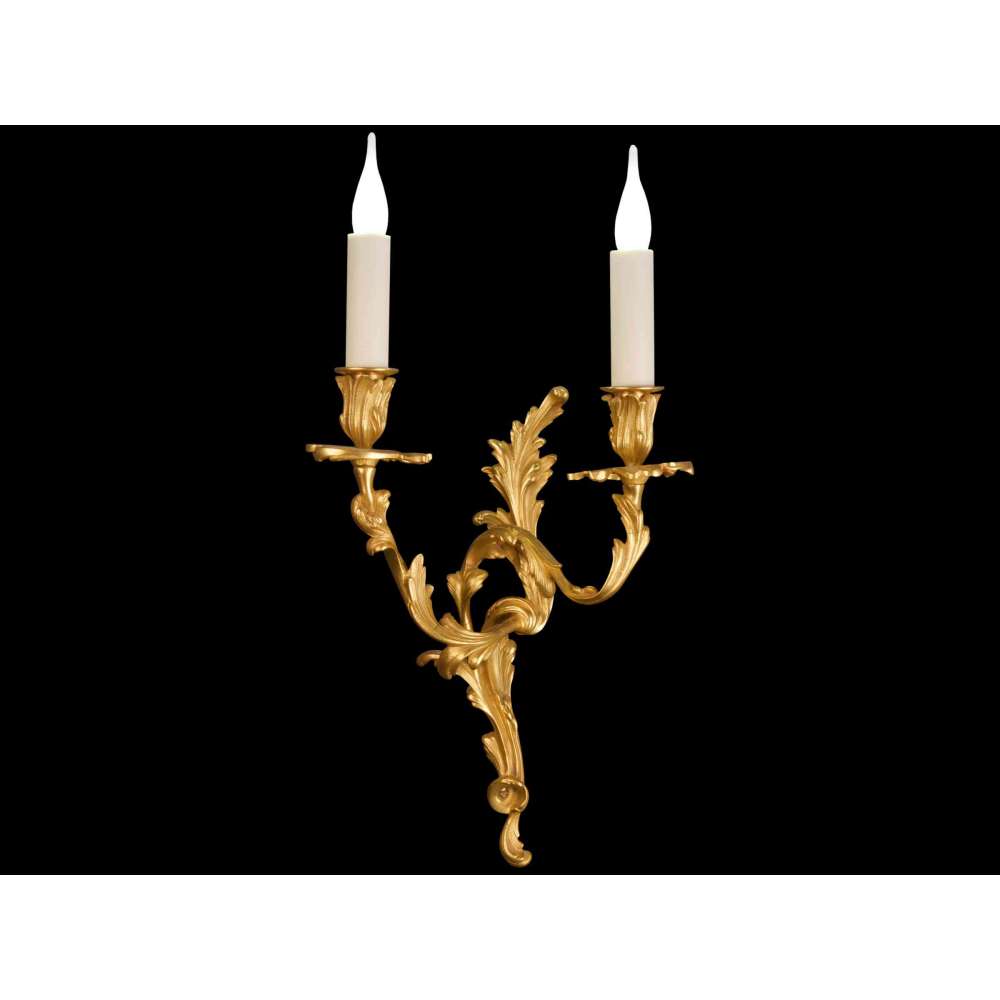Dwuramienny kinkiet Ludwika XV z pozłacanym brązem 24K.