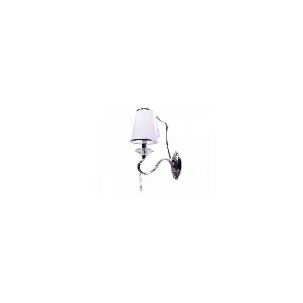 Finezzia to metalowy kinkiet z kryształową i ognioodporną tkaniną w dwóch kolorach. Zawiera 1 punkt świetlny z gniazdem E27, napięcie 220-240V, moc 40W z żarówką energooszczędną, brak w zestawie. Można włożyć dowolny rodzaj żarówki.