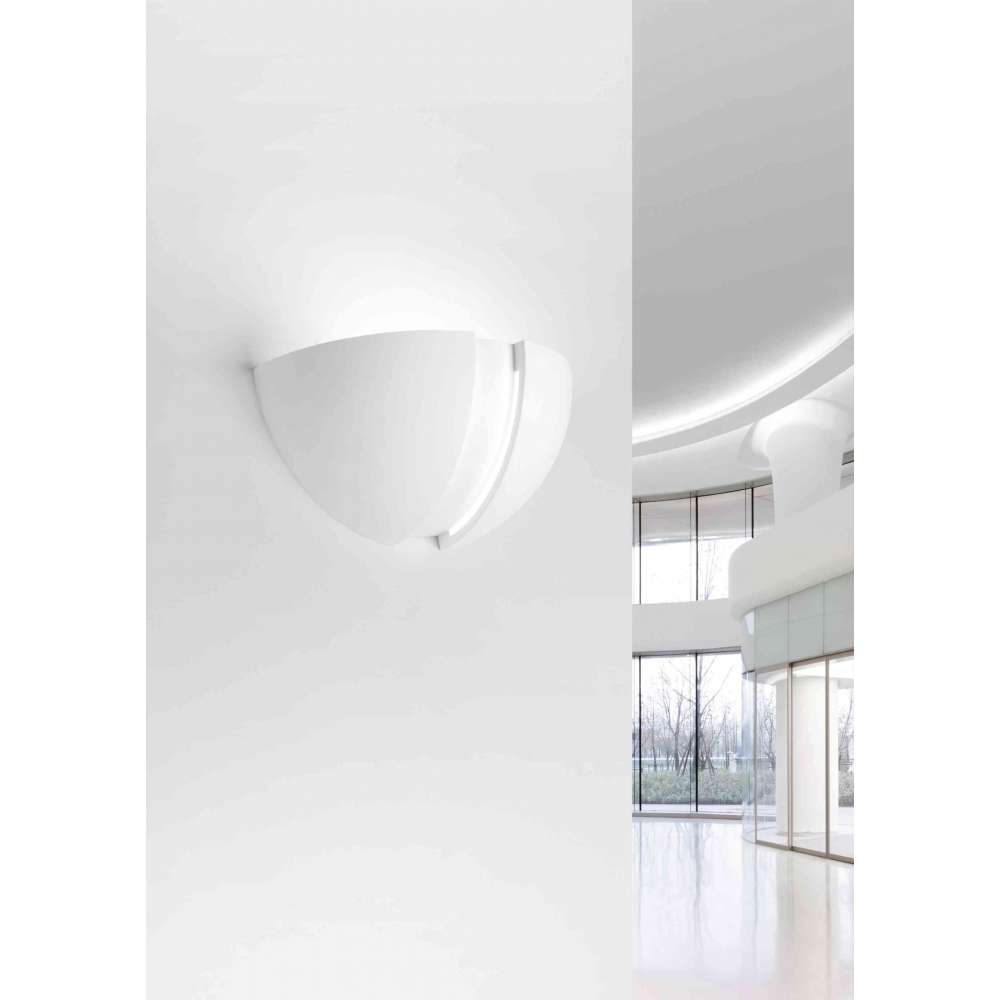 Carystus to gipsowa lampa ścienna z górnym światłem i efektem światła odbitego z przodu. Przyjmuje żarówkę halogenową, świetlówkową lub LED ze złączem E27 - 1X60W.