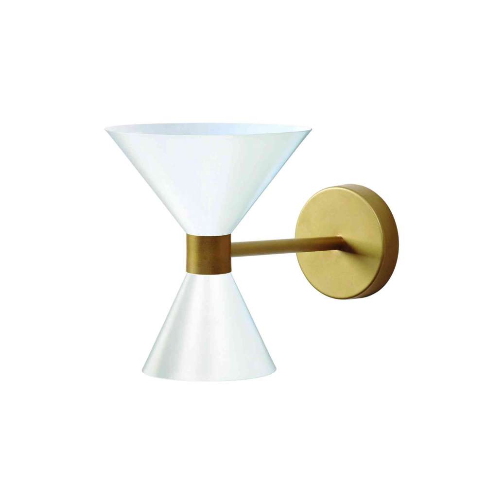 Lampa ścienna Uec jest dostępna w kolorze czarnym i złotym, a jej podwójne metalowe klosze rzucające światło w górę i w dół sprawiają, że jest to bardzo dekoracyjna lampa, odpowiednia zarówno do użytku domowego, jak i do projektów kontraktowych.