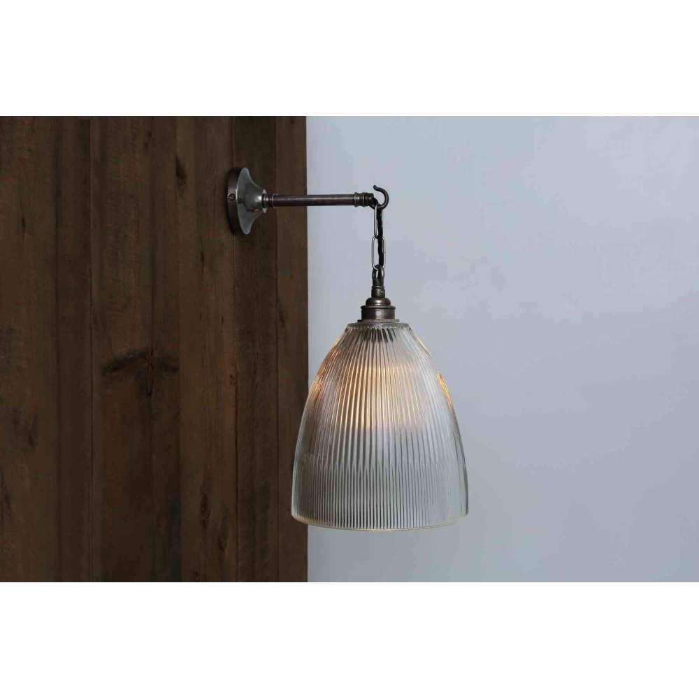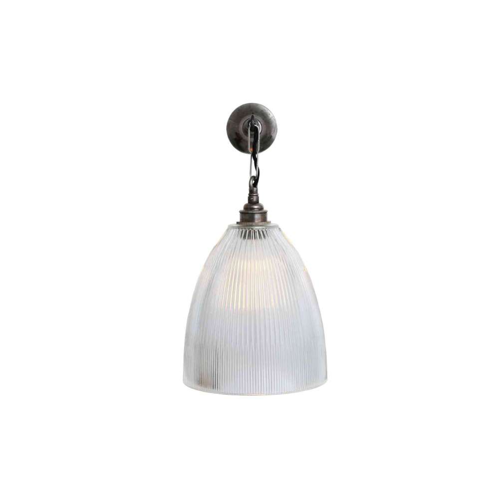 Dzięki szklanemu kloszowi lampa ścienna Fend Prismatic załamuje światło, dając nieoślepiający blask.