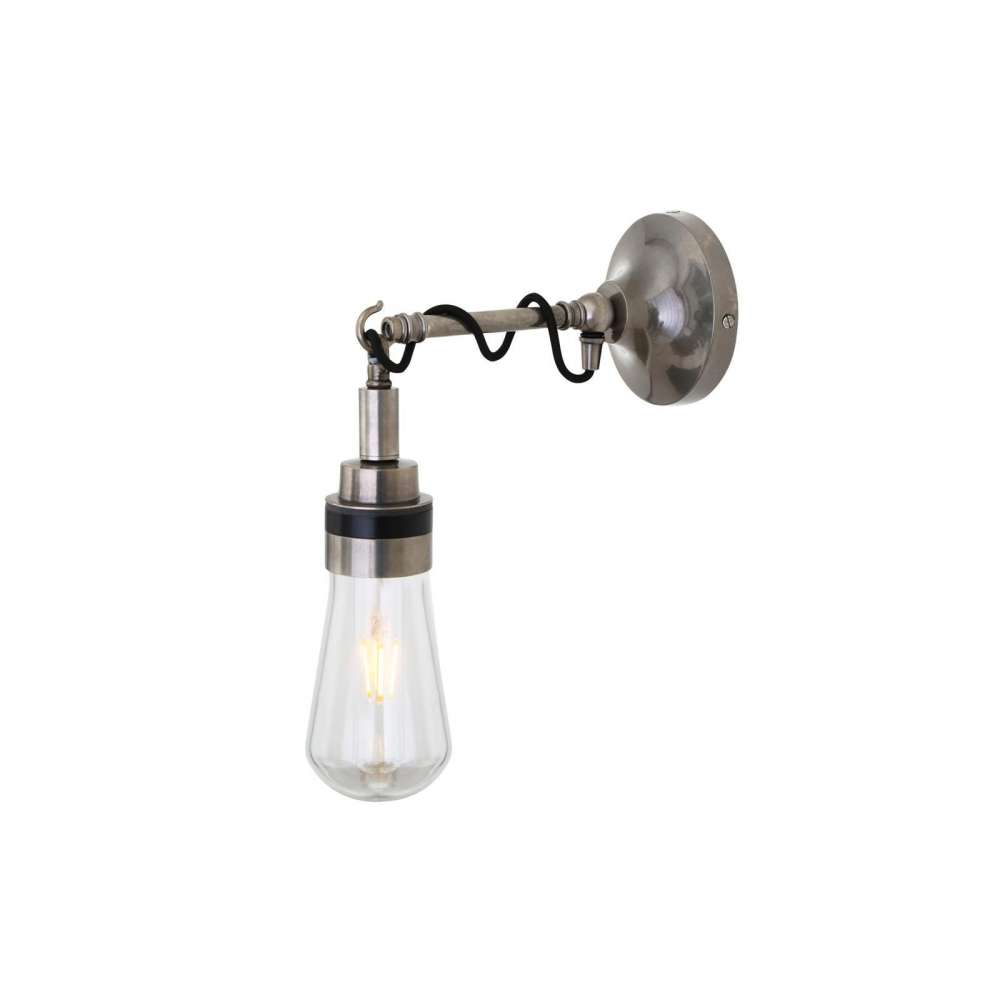 Dzięki uproszczonemu i klasycznemu wzornictwu przemysłowemu kinkiet łazienkowy MAYIM emanuje urokiem vintage. Minimalistyczne podejście widocznej żarówki dodaje subtelnego, ale stylowego akcentu do każdej przestrzeni. Szklany klosz w kształcie łzy otacza żarówkę LED wewnątrz wodoszczelnej obudowy, naśladując klasyczny kształt łzy starej żarówki Edisona. Ta lampa ścienna do łazienki w stylu vintage jest idealna do każdej przestrzeni vintage lub industrialnej. Wykonany z mosiądzu kinkiet łazienkowy MAYIM ma 8 cm średnicy i 30 cm wysokości. Oprawa jest zawieszona na otwartym haku przymocowanym do mosiężnej tulei wystającej prostopadle do ściany. Ten industrialny kinkiet łazienkowy wygląda świetnie, gdy jest oświetlony ciepłą żarówką LED, aby wzmocnić swój styl vintage (sprzedawany oddzielnie).