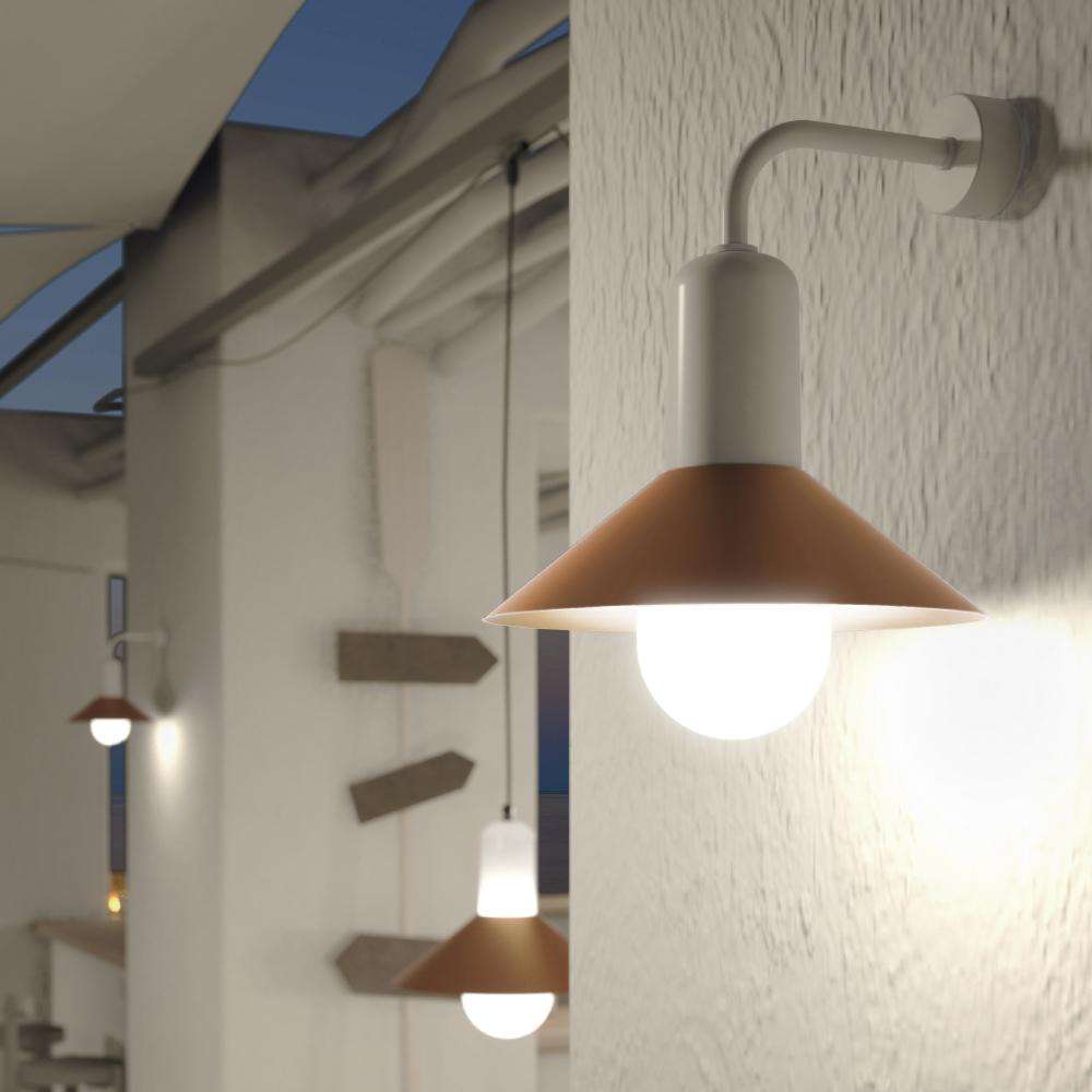 TAGOMAGO to seria składająca się z lampy wiszącej oraz kinkiety do użytku wewnętrznego i zewnętrznego.