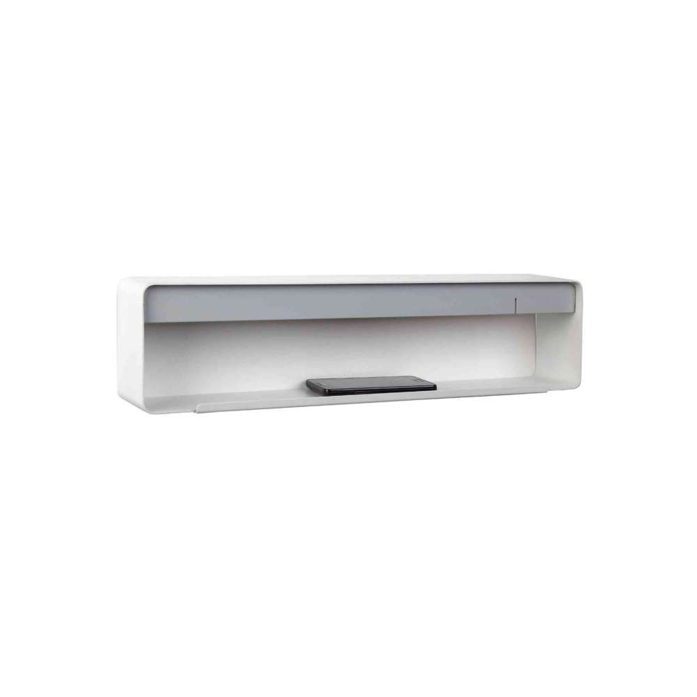 Ten kinkiet Welcome wprowadzi do sypialni ciepłe światło dzięki mocnemu źródłu led, jest również bardzo funkcjonalną lampą, ponieważ jej powierzchnia służy jako półka na różnorodne przedmioty.