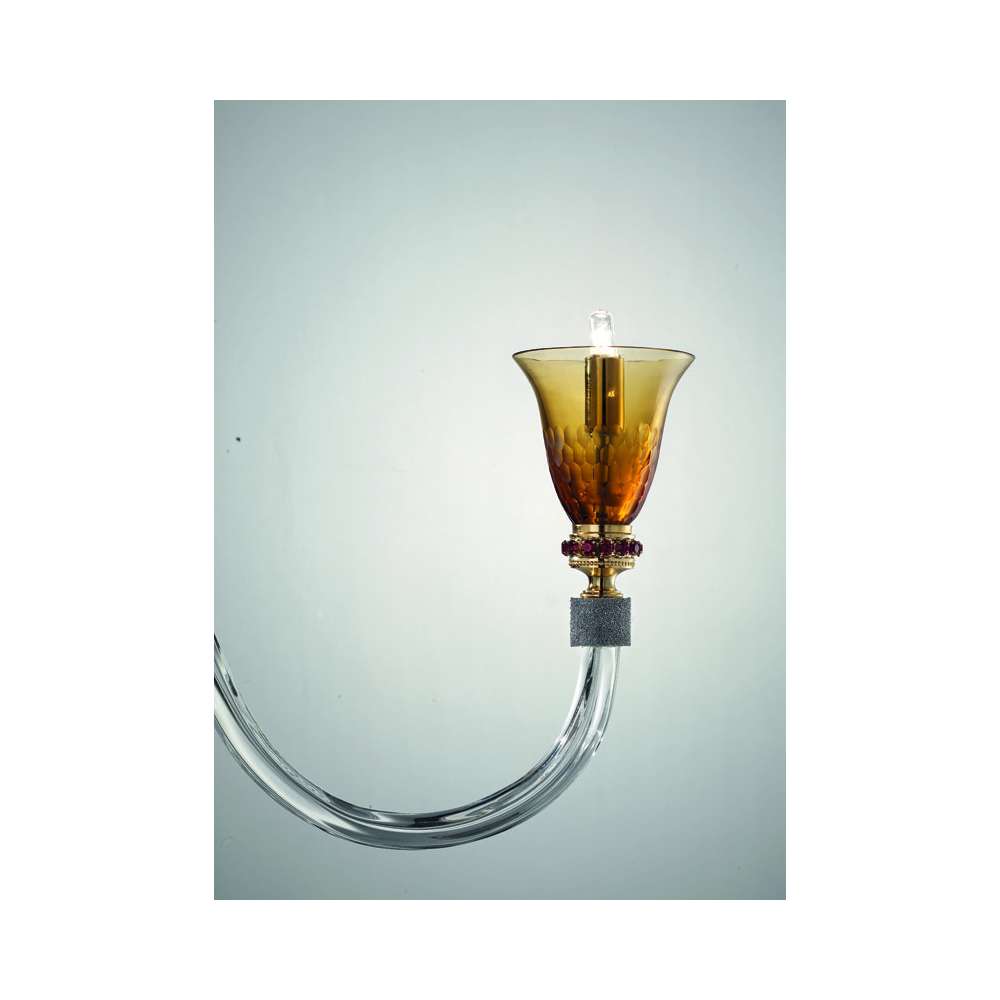 Metalowe wykończenie : lśniące złoto 24K. Kolory : środek, zauszniki i końcowa filiżanka są przeźroczyste z filiżankami w kolorach przeźroczysty - rubinowy - bursztynowy. Inne kolory na życzenie. Szczególny : ozdobiony kryształami Swarovski® crystals, zawieszkami i aplikacją. Element dekoracyjny wykonany ręcznie z 24K złota i kamieni rubinowych. Kubki z kryształów szlifowanych wykonane w Toskanii.Odbiorca: :
