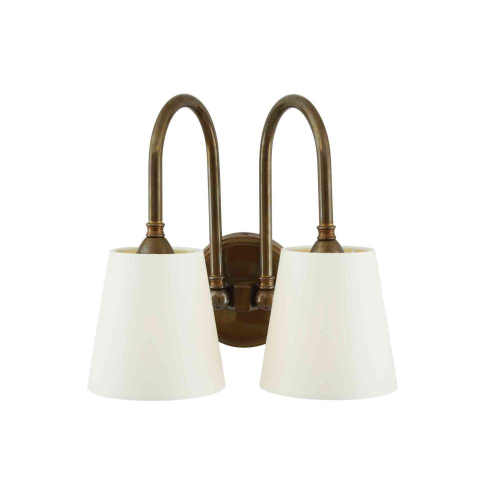 Dwuramienna lampa ścienna Uppsala Materiał Mosiądz Projekcja 18 cm | 7” Waga 1.014kg Maksymalna moc 40W Napięcie 220/240V Oprawka E14 x2 | Plastikowy stopień ochrony IP20 Wspornik ścienny MLWB08 Kod materiału MLFS005Odbiorca: :