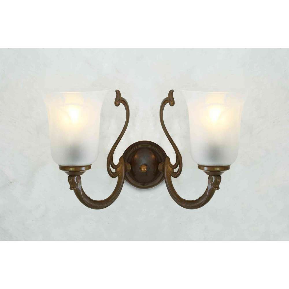 Dwuramienna lampa ścienna Brisbane. Materiał Mosiądz | Szkło Projekcja 18 cm | 7” Waga 1,407kg Maksymalna moc 40W Napięcie 220/240V Oprawka E27x2 | Plastik | ES | Śruba Edison Klasyfikacja IP20 Wspornik ścienny MLWB01 Szkło kod GL157Odbiorca: :