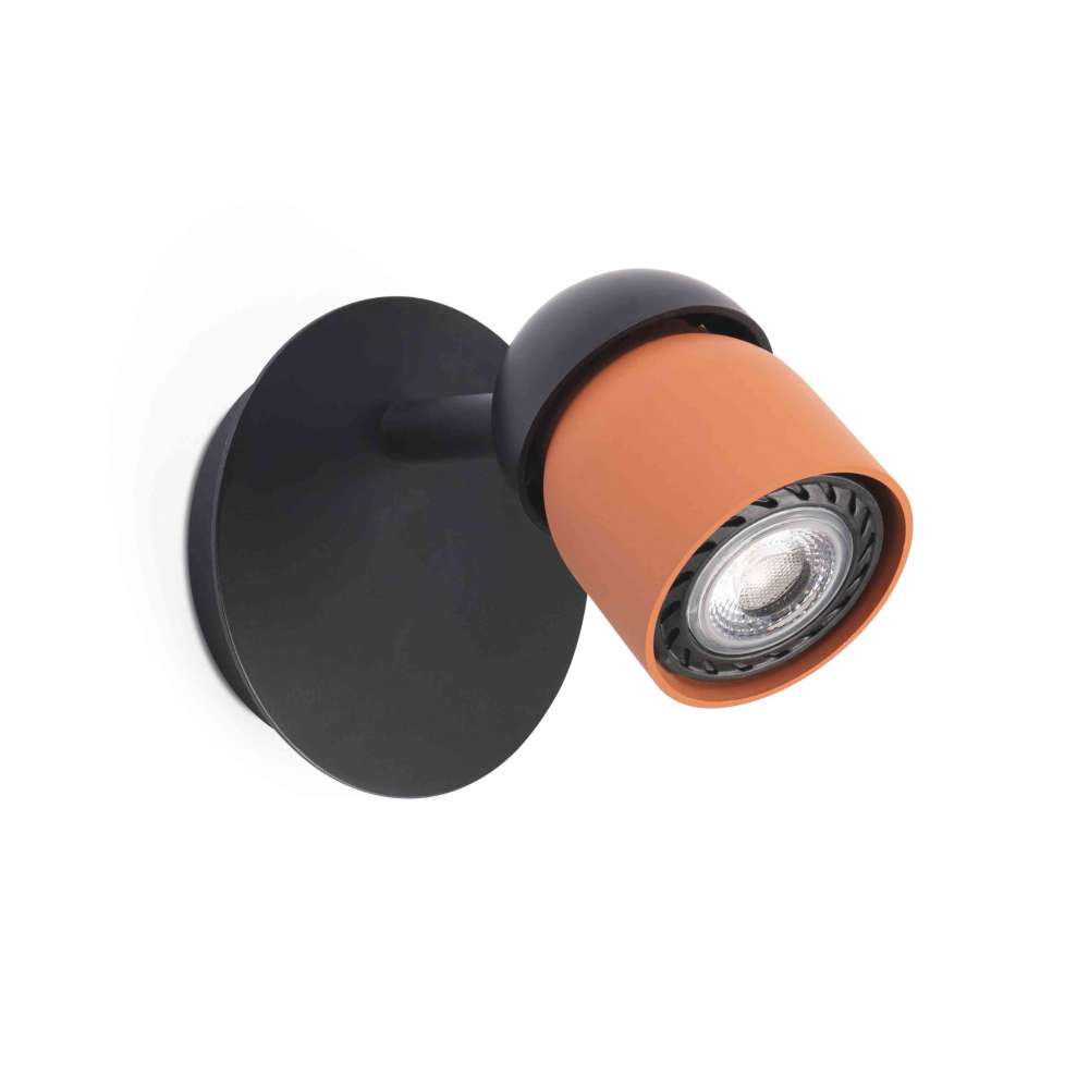 COCO czarna i terakotowa lampa ścienna wykonana ze stali może być skierowana w kierunku 350º na osi poziomej i 90º na osi pionowej, dzięki czemu idealnie pasuje do każdej przestrzeni i potrzeb. Dane techniczne Żarówka : 1XGU10 MAX 8W LED PANTALLA RAL 20001 W zestawie żarówka: Nie Napięcie: 100-240V IP: 20 Klasa: I Kolekcja kinkietów stworzona przez Faro Lab. COCO ma zabawny design i różne wykończenia i wersje.Odbiorca: :