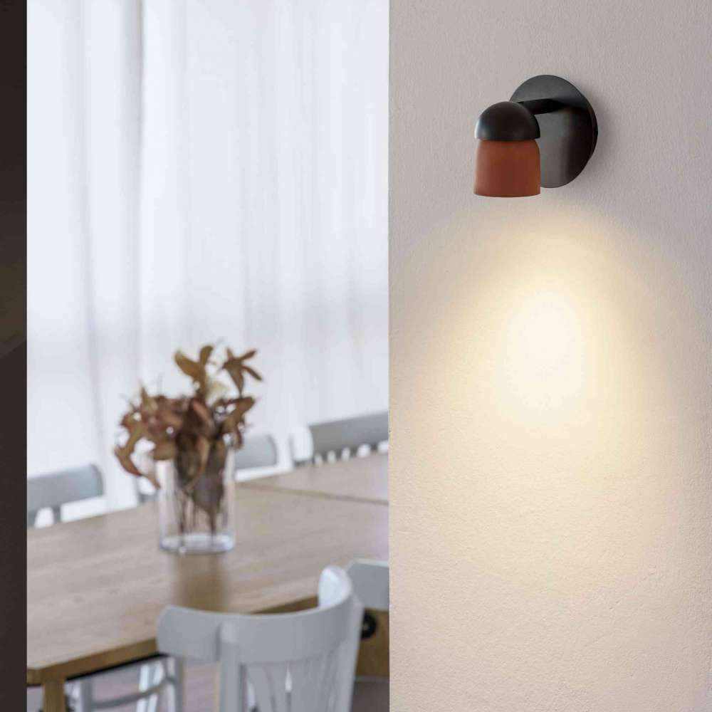 COCOczarna i terakotowa lampa ścienna wykonana ze stali może być skierowana w kierunku 350º na osi poziomej i 90º na osi pionowej, dzięki czemu idealnie pasuje do każdej przestrzeni i potrzeb.