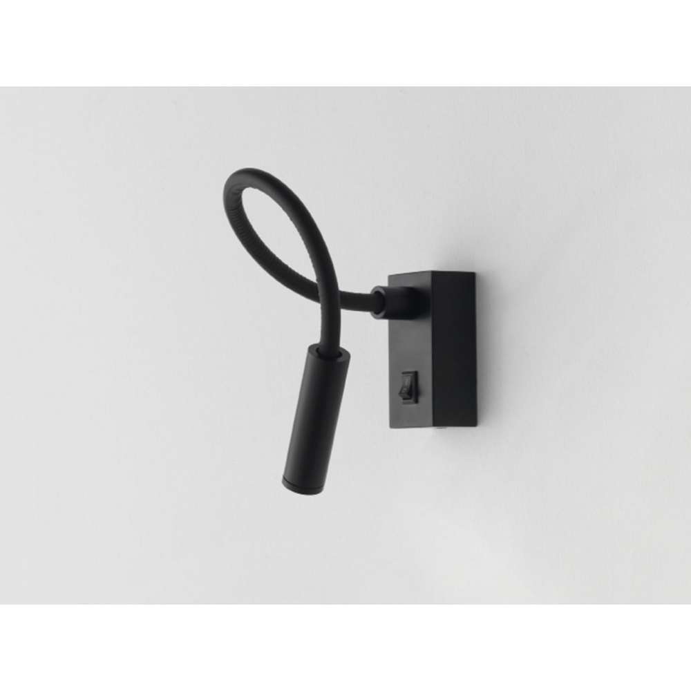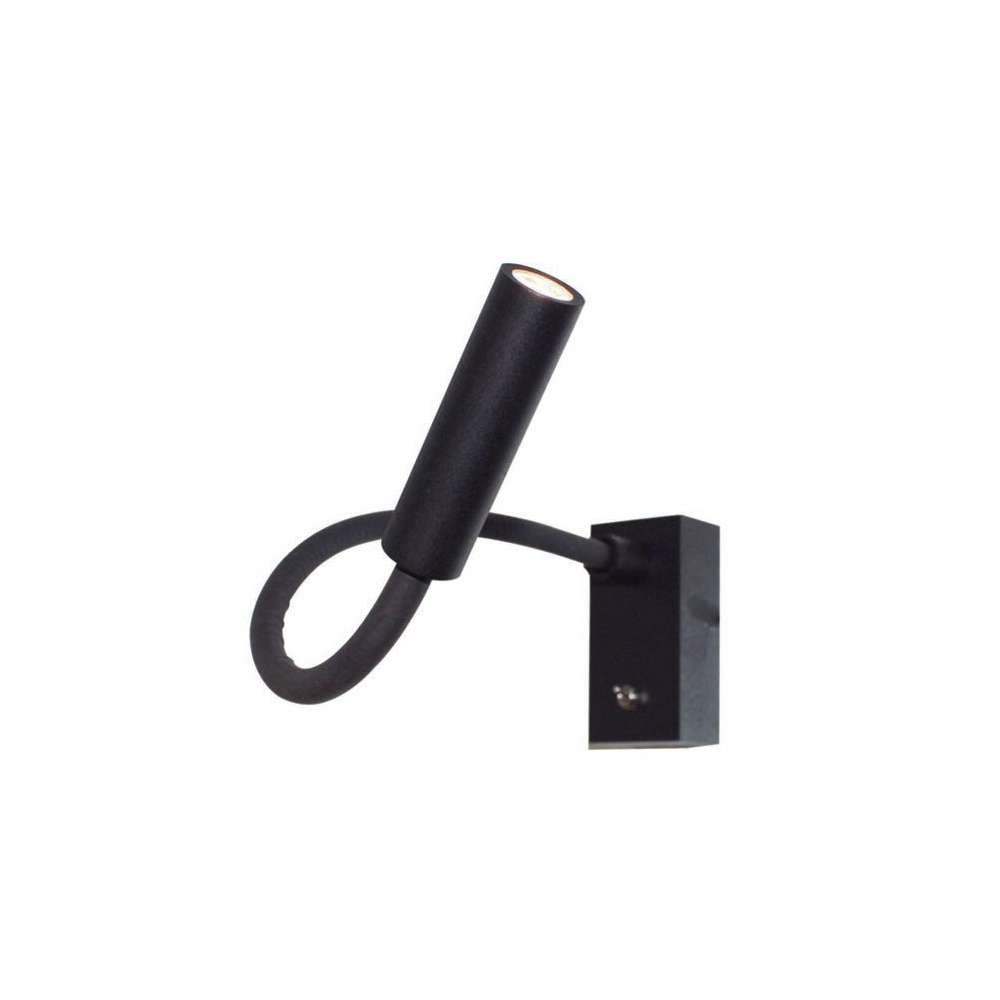 Kinkiet metalowy malowany na czarno, led 3w 3000k. Ramię pokryte tkaniną w kolorze czarnym. Włącznik na tylnej płycie.