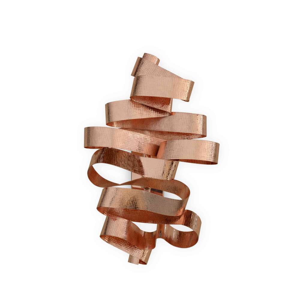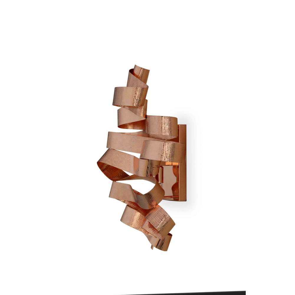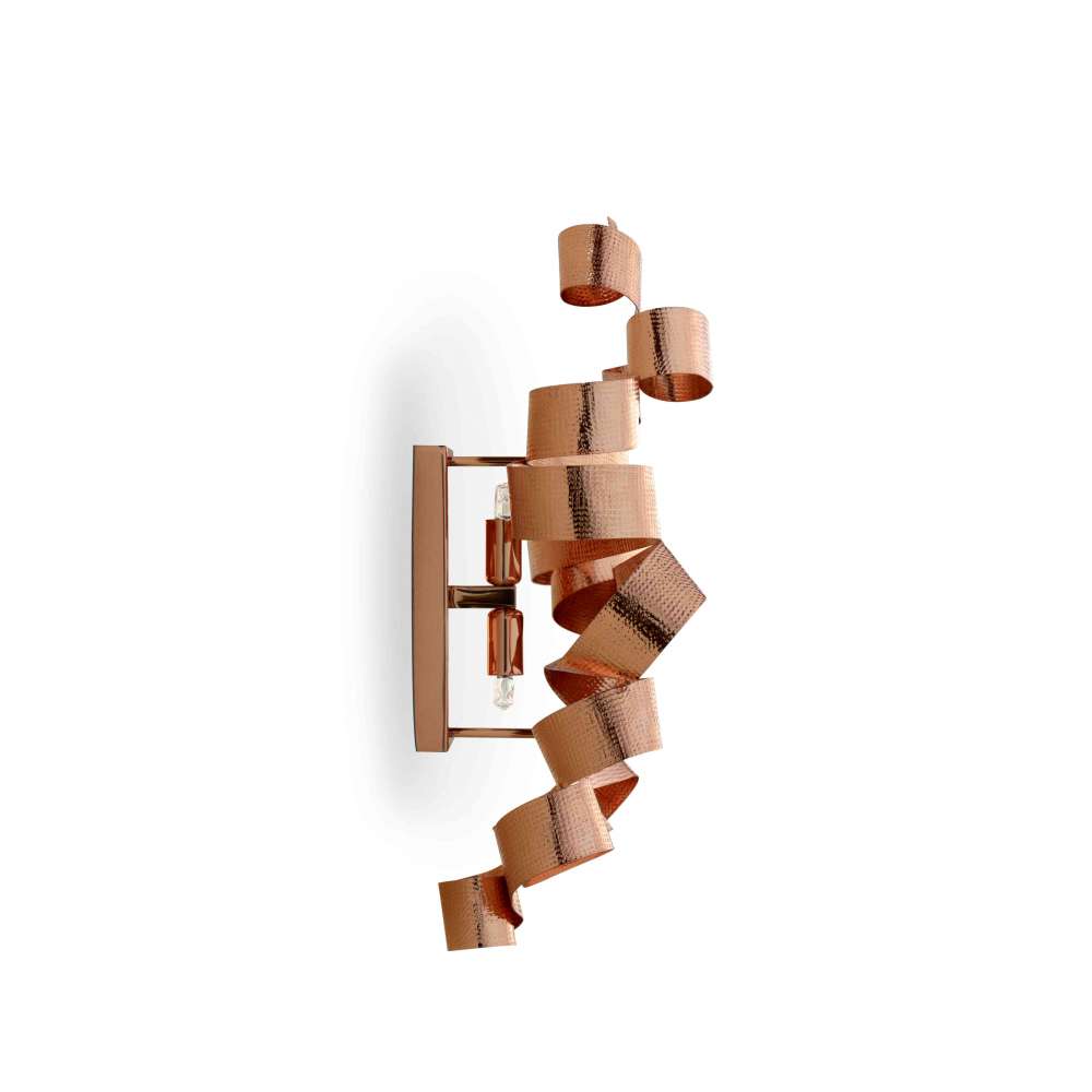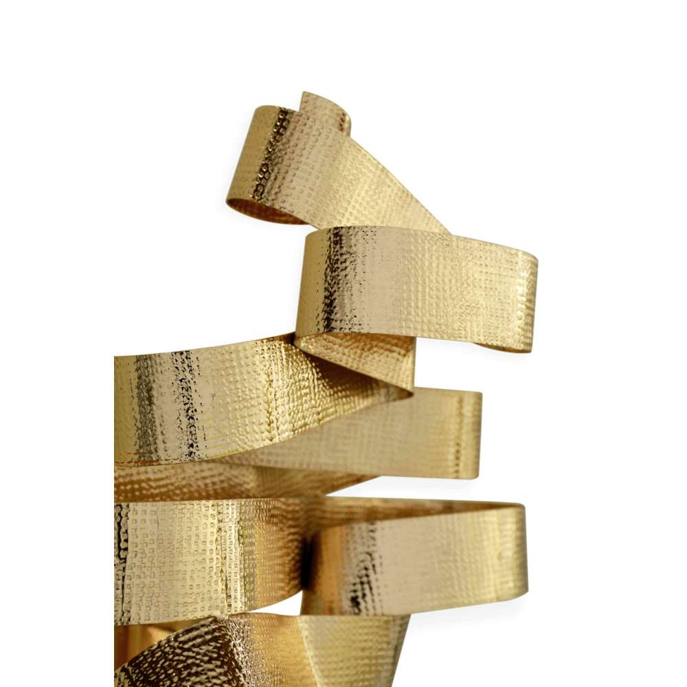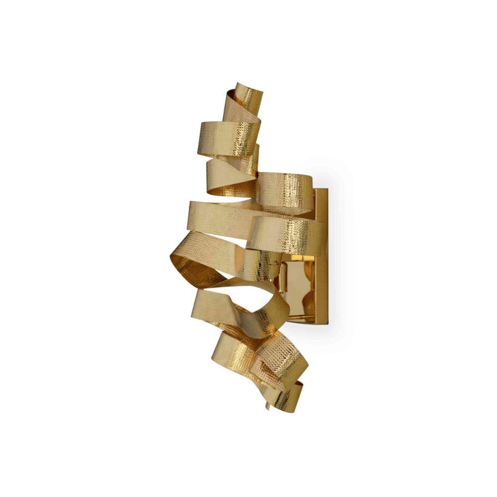 Niespodziewane skręty w magicznie sugestywnej wstążce budzą Twoje najgłębsze zmysły, sprawiając wrażenie, że jesteś otulony impulsywnym urokiem małej dziewczynki. Znakomite młotkowane tekstury tańczą po błyszczącym metalu. Konstrukcja: Pozłacany młotkowany mosiądz z piki o wysokim połysku Lampa: 2x (G9)Odbiorca: :