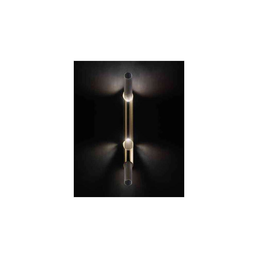 Ten projekt oświetlenia został stworzony, aby ozdobić ściany Twoich projektów najlepszymi materiałami. Wykonany z prostej rurki ze szkła kryształowego i mosiądzu, ten projekt oświetlenia został stworzony, aby ozdobić ściany Twojego projektu. Okazując jednocześnie żywiołowość i prostotę, idealnie nadaje się do oświecenia dzieł sztuki, takich jak obrazy lub rzeźby.