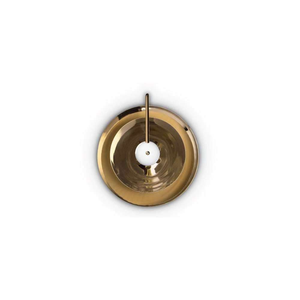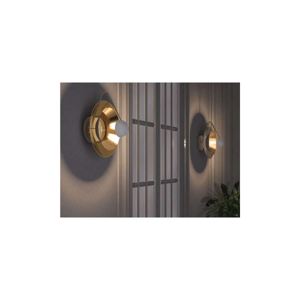 Oprawa ścienna Basie to nowoczesna reprezentacja estetyki sci-fi z lat 60-tych. Lampa w stylu vintage z połowy wieku ma zestaw charakterystycznych cech, które sprawiają, że jest oszałamiający. Jest to kinkiet do wnętrz wykonany ręcznie z mosiądzu, z centralnym kloszem wykonanym z aluminium i hipnotyzującym, pozłacanym standardowym wykończeniem. Klosz lampy jest lakierowany na błyszczącą biel, aby uzyskać bardziej nowoczesny wygląd. Będąc eleganckim i wyrafinowanym elementem, doskonale sprawdza się jako dekoracyjna lampa ścienna w każdym współczesnym przedpokoju lub salonie.