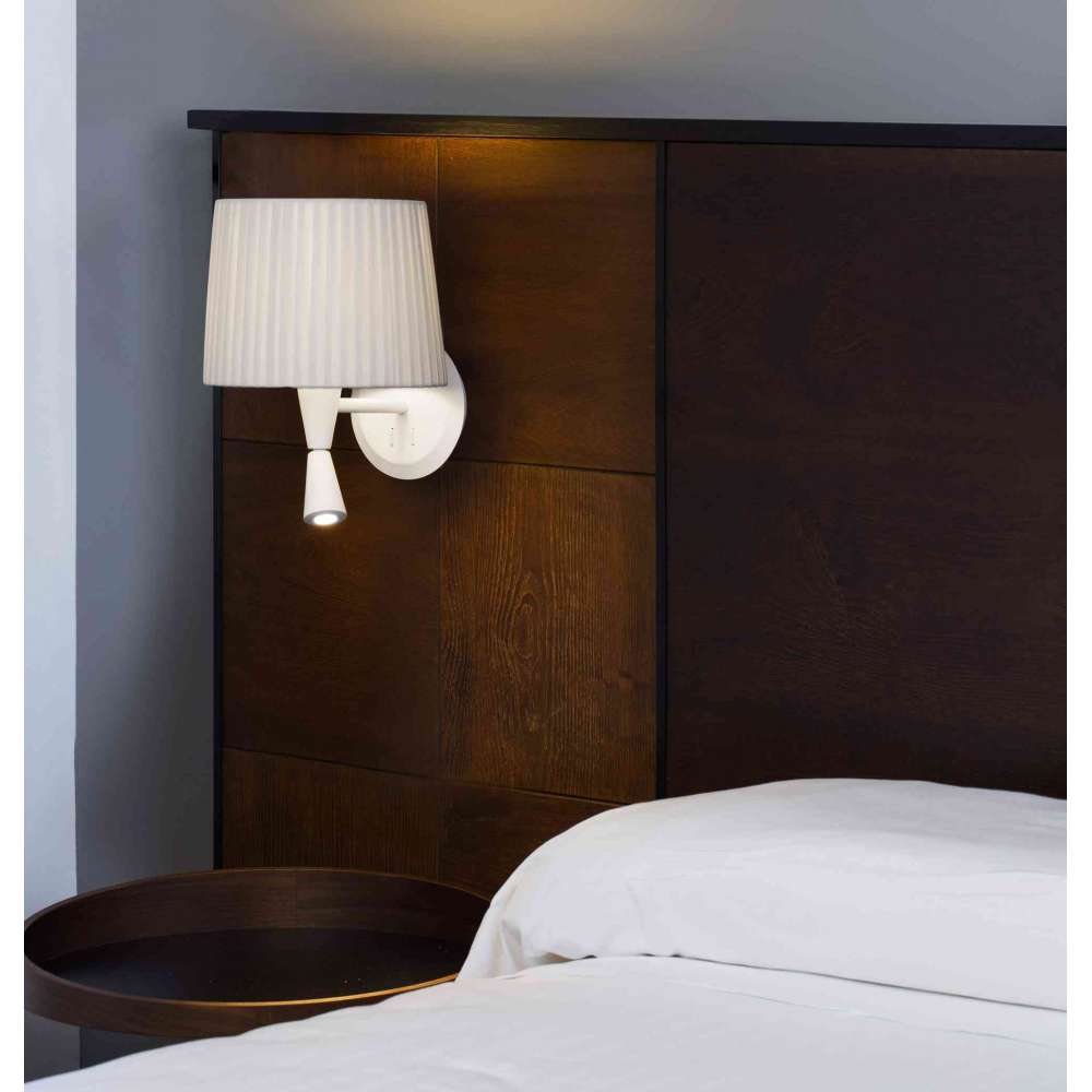 MAMBO to kolekcja lamp wewnętrznych zaprojektowana przez Faro Lab. To nowa odsłona klasycznej serii dla hoteli i domów. Wszystkie struktury można łączyć z różnymi odcieniami, aby dostosować je do różnych gustów i potrzeb. Ta biała lub czarna lampa ścienna z czytnikiem LED jest idealna jako podpora lub lampka do czytania.