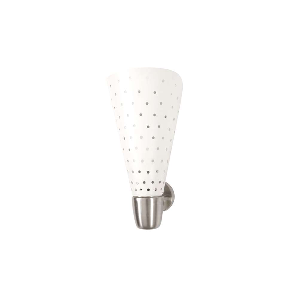 Współczesna interpretacja nowoczesnych projektów oświetleniowych z połowy wieku wyprodukowanych w latach 50. i 60., kinkiet Dizzy jest w 100% zaprojektowany i wykonany ręcznie w Portugalii. Ta konstrukcja oświetlenia Stilnovo jest wykonana z mosiądzu, z niklowanymi i błyszczącymi białymi standardowymi wykończeniami, które można dostosować do własnych potrzeb i projektu wnętrza. Ze względu na swój minimalistyczny charakter, biały kinkiet Dizzy jest niezwykle uniwersalnym elementem, który można zastosować w prawie każdym pomieszczeniu Twojego nowoczesnego domu z połowy wieku. Świetnie sprawdzi się jako dekoracyjny kinkiet w sypialni w stylu skandynawskim, a nawet jako lampka nocna.