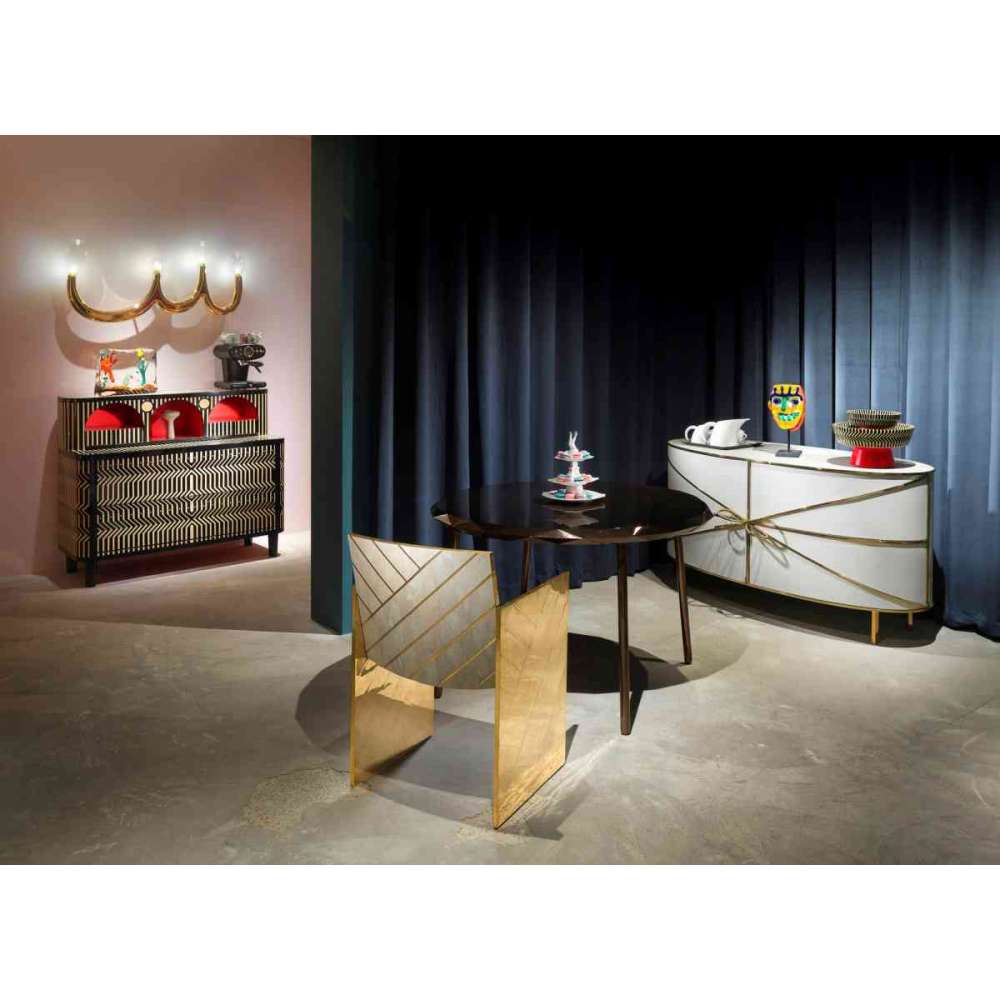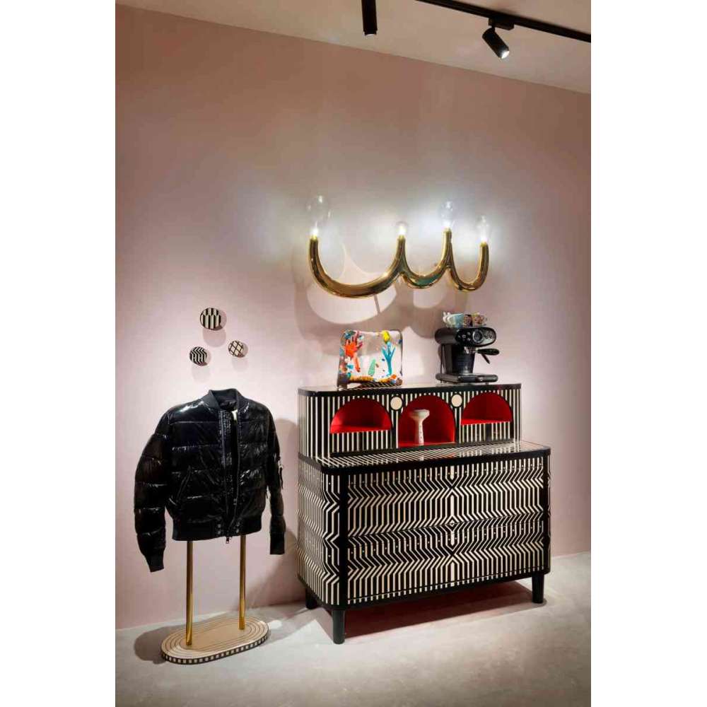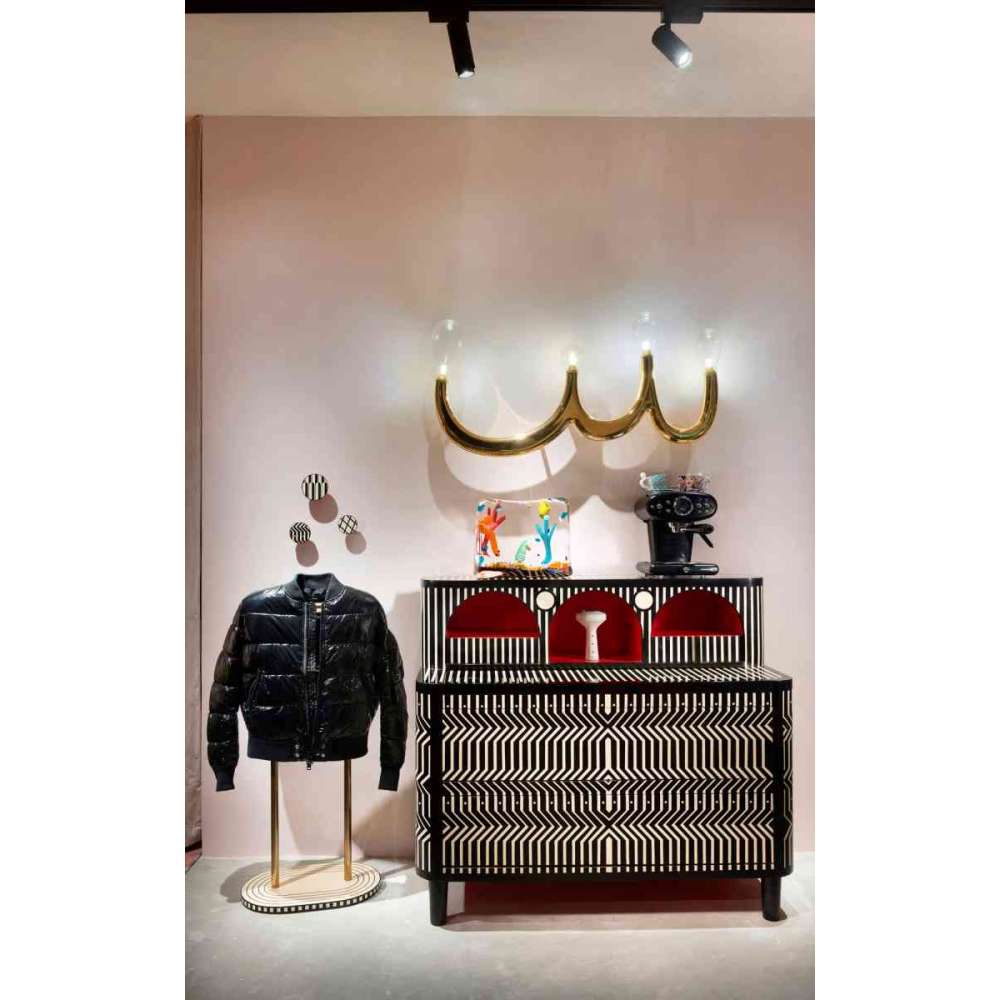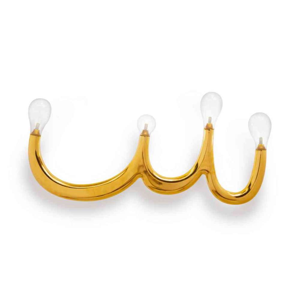 Luce Naga - Faliste, ceramiczne złote światła oddają płynność ruchu węża w szlachetnej ceramice. Światła są dramatyczne, nigdy subtelne, ale klasyczne w swojej formie i wykonane we Włoszech. Matteo Cibic osiąga zadziwiającą mieszankę zabawy i luksusu, które są zwieńczone ręcznie dmuchanymi, niemal dziwacznymi osłonami nad wysokiej jakości żarówkami LED.