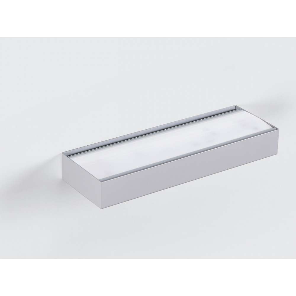 Oprawa naścienna LED. Płaska oprawa oświetleniowa z mlecznym kloszem DOZ z poliwęglanu, zapewniająca równomierne oświetlenie ściany dzięki równomiernemu pośredniemu rozsyłu światła. Standardowy całkowity strumień świetlny 2580 lub 5160 lm, 4000K, CRI>80 i żywotność 50.000h (@L80, B10, Ta 25ºC). Opcjonalny sterownik ściemniania DALI i 3000K.