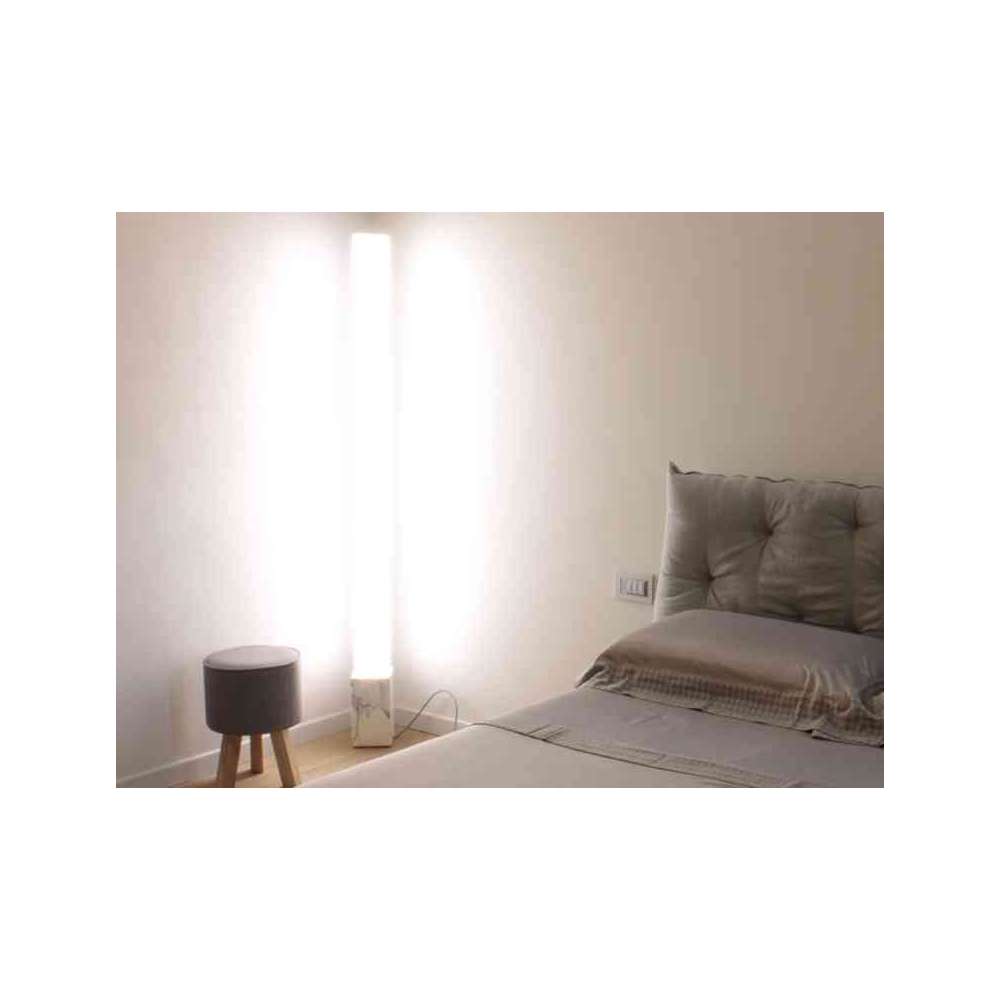 Setki diod LED nagrzewają się w cylindrycznej obudowie i świecą zgodnie z FLUO. Lampa podłogowa z marmurową podstawą, zwężająca się konstrukcja i biała stalowa podstawa dostosowują się do każdego środowiska. Dla tych, którzy szukają lampy podłogowej LED o zdecydowanym charakterze i marmurowej podstawie, dostępne są wersje z kamienia lawowego lub marmuru Carrara, dzięki którym każdy element jest wyjątkowy.