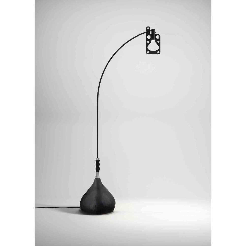 Aluminiowa lampa podłogowa z podstawą ze sztucznej skóry