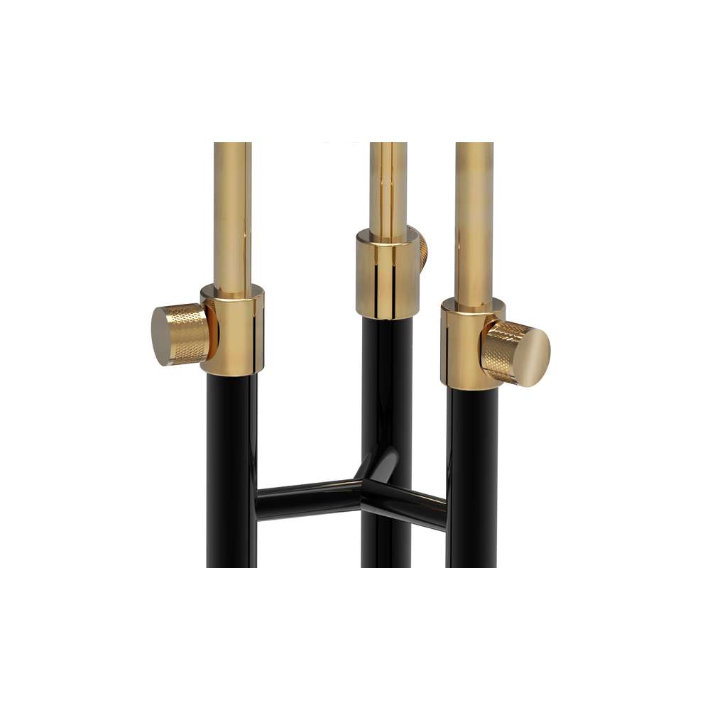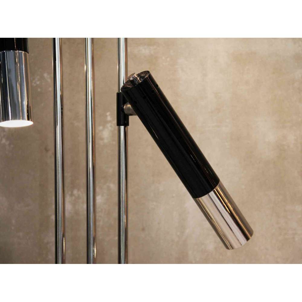 IKE - Wynik współpracy holenderskiego projektanta z zespołem projektowym Delightfull. Surowe, północne zasady projektowania spotykają się z południowym gustem. Wykonany z myślą o środowiskach architektonicznych jest rzeźbiarski, a jednocześnie funkcjonalny. Ike to dzieło ponadczasowe. Jego konstrukcja wykonana jest z mosiądzu, a klosze z aluminium. Klosz i rama: chromowany lub pozłacany kolor lakierowany RAL. WYMIARY: Wysokość: 70”| 180cm. Średnica: 15,7” | 40cm. LAMPY: Żarówki G9 3x.