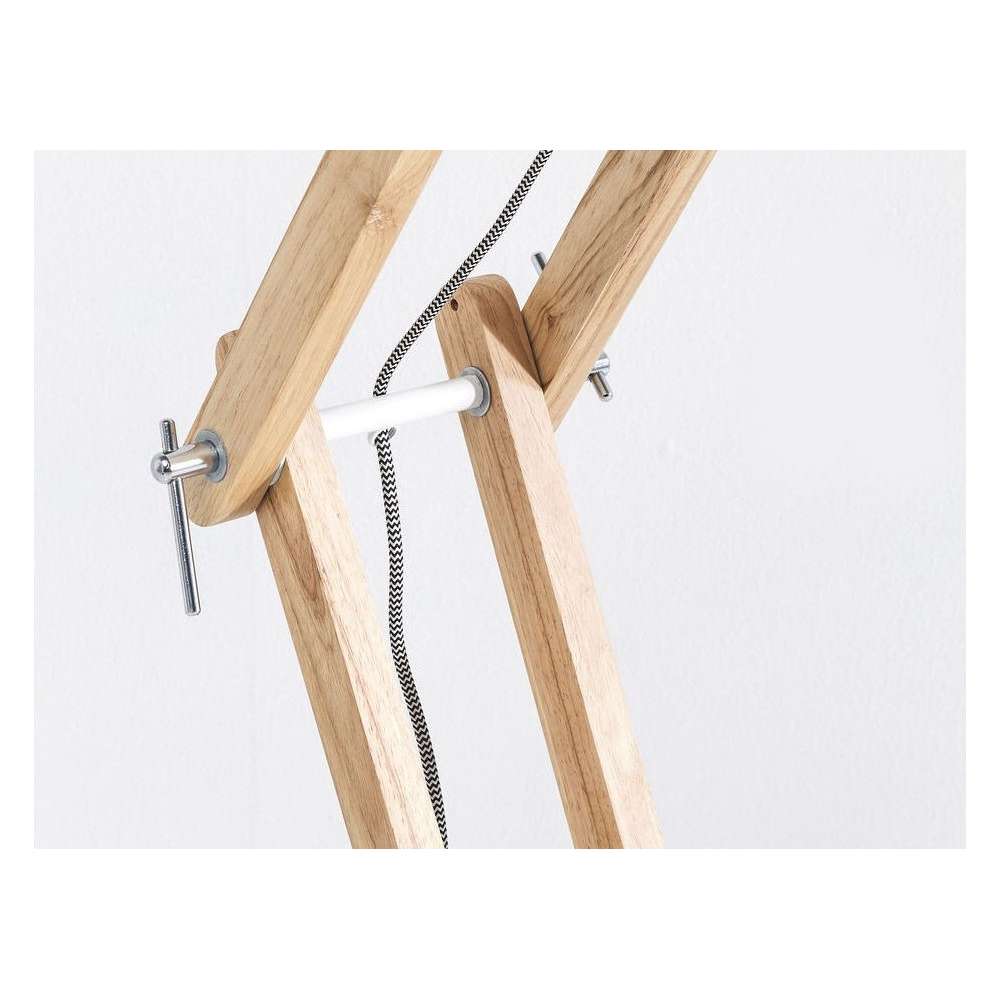 Regulowana lampa podłogowa ze stali i drewna